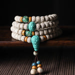 Star and Moon Bodhi 108 Mala Beads Bracelet – Luminous Mongolian Turquoise Edition