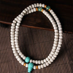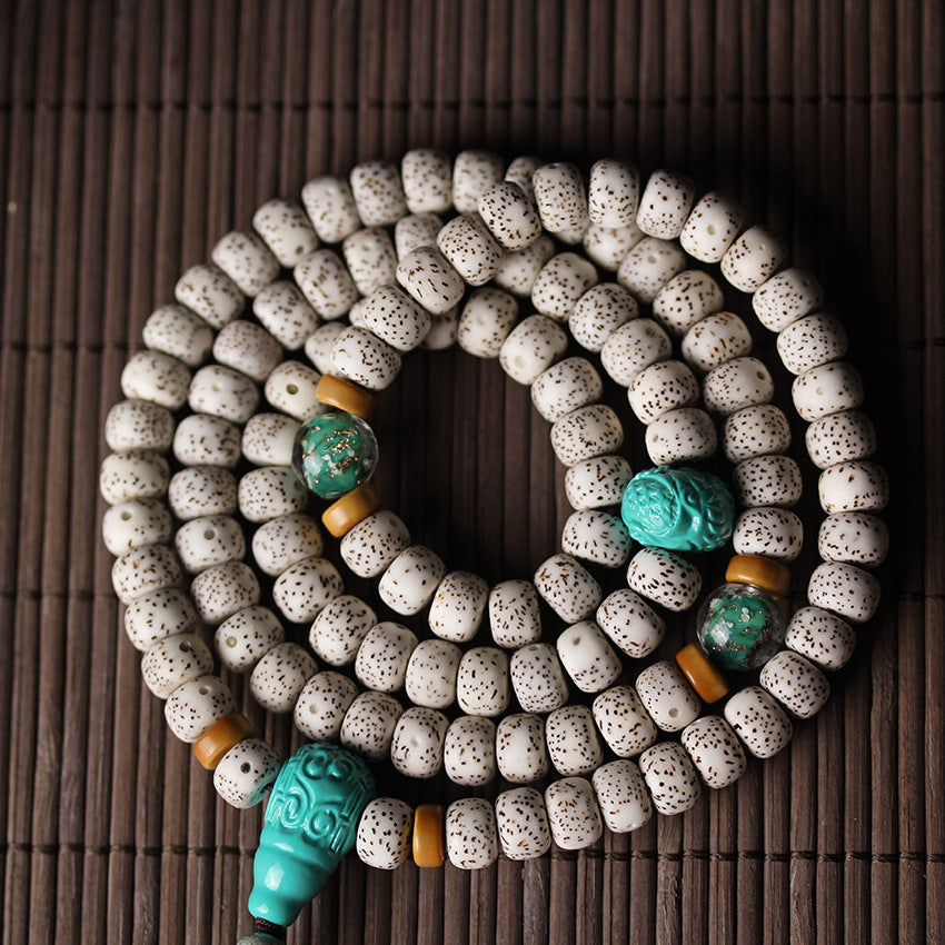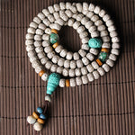 This bracelet is thoughtfully strung with 108 natural Star and Moon Bodhi beads, complemented by luminous glass accents and a vibrant Mongolian turquoise guru bead. Designed for both men and women, it’s a piece that brings together mindfulness, tradition, and natural beauty—ideal for meditation or daily grounding.