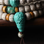 Star and Moon Bodhi beads, with their signature speckled surface, symbolize clarity, patience, and the rhythm of life. The glowing glass beads add a soft spiritual light, while the Mongolian turquoise guru bead is a symbol of protection, healing, and deep inner calm.