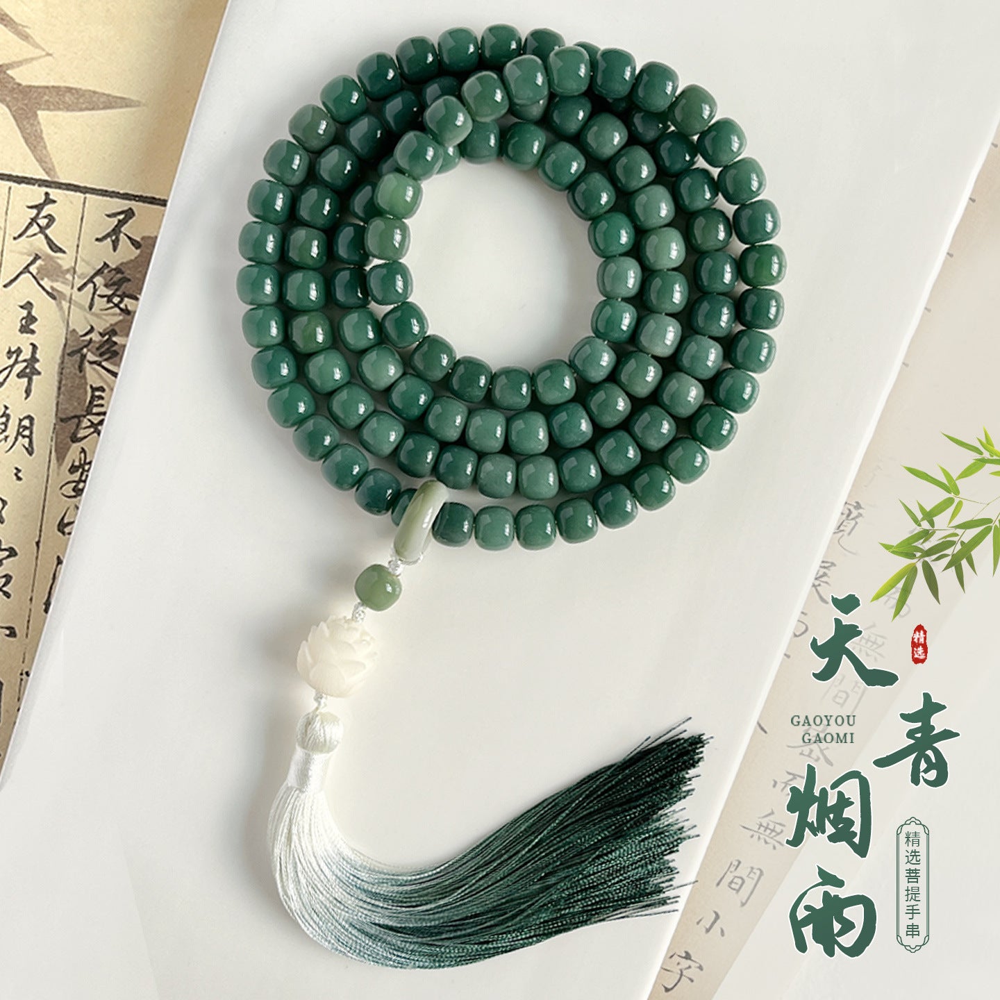 Natural Green Bodhi Seed Mala – 108 Beads for Meditation & Mindful Living