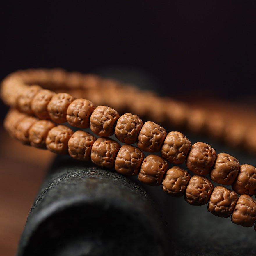 Description Hand-strung with 108 premium Buddha's Hand Rudraksha Bodhi seeds sourced from mature Bodhi trees, each bead reveals a naturally textured surface—an authentic symbol of spiritual protection and wisdom rooted in Tibetan tradition.
