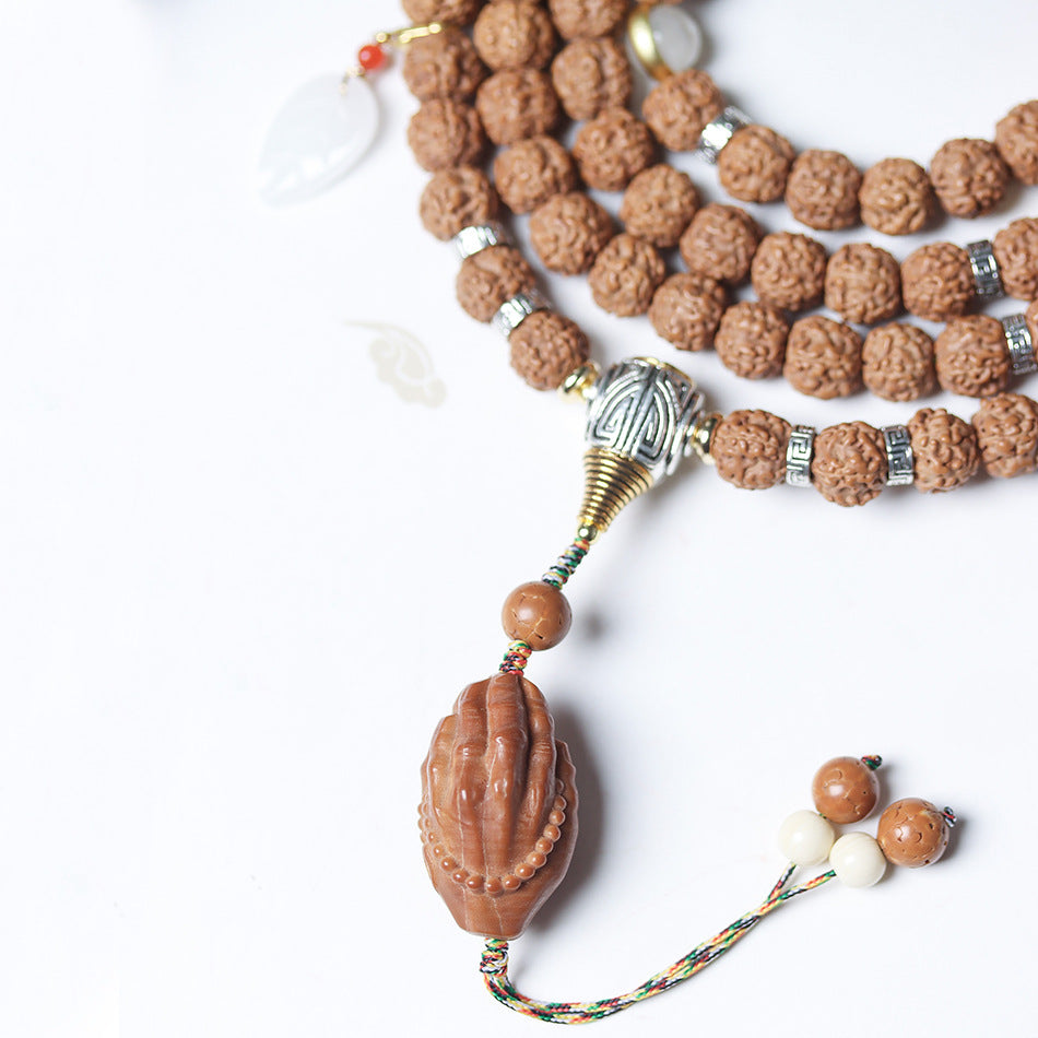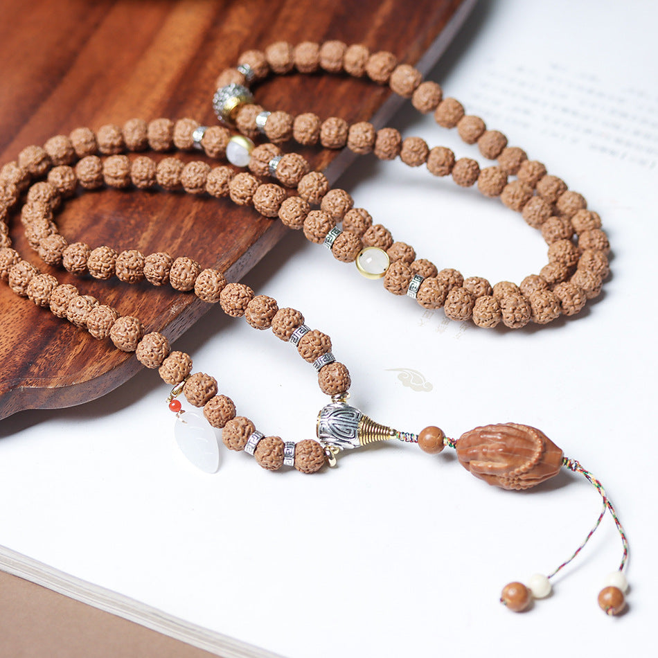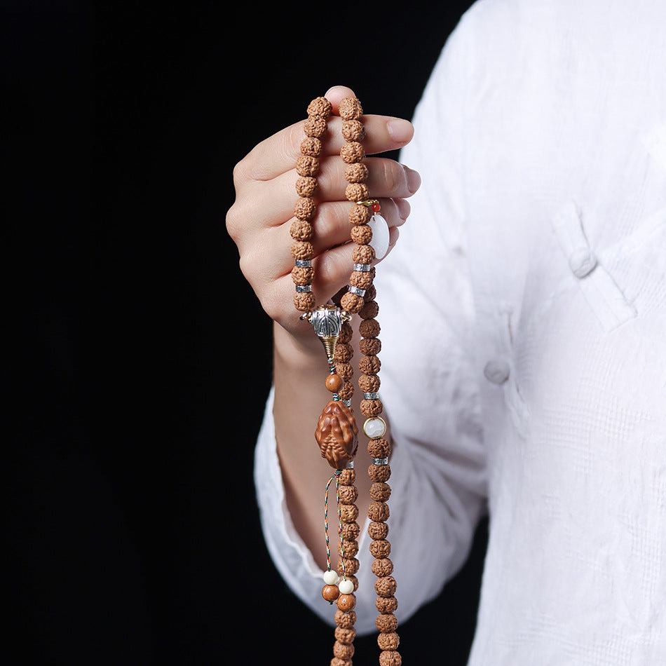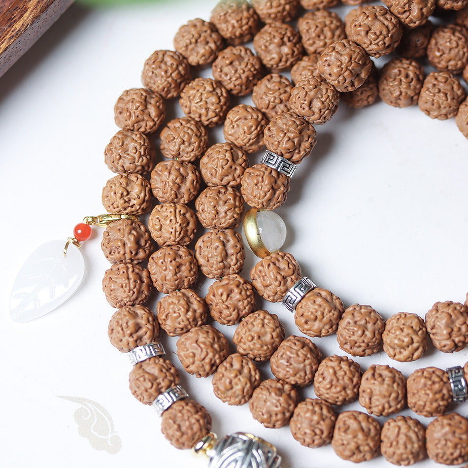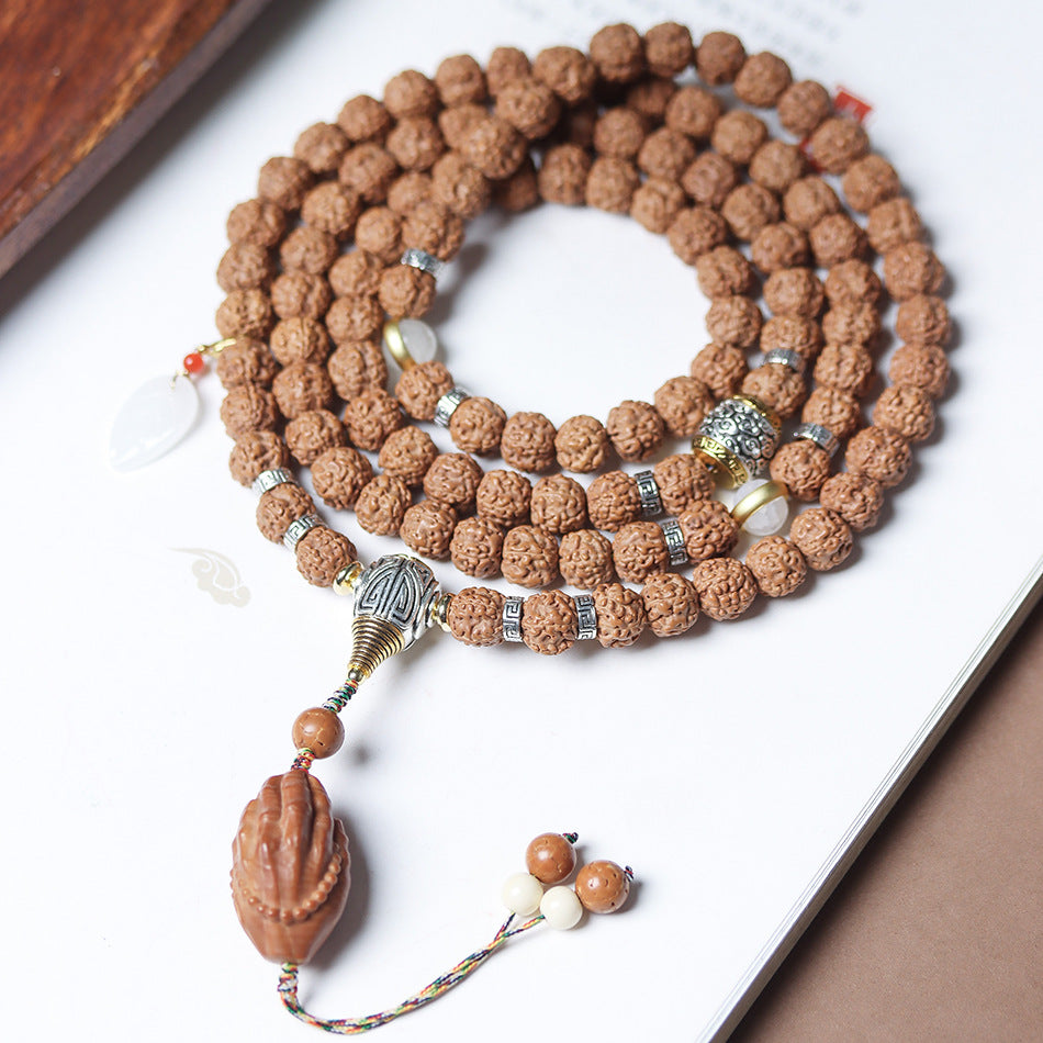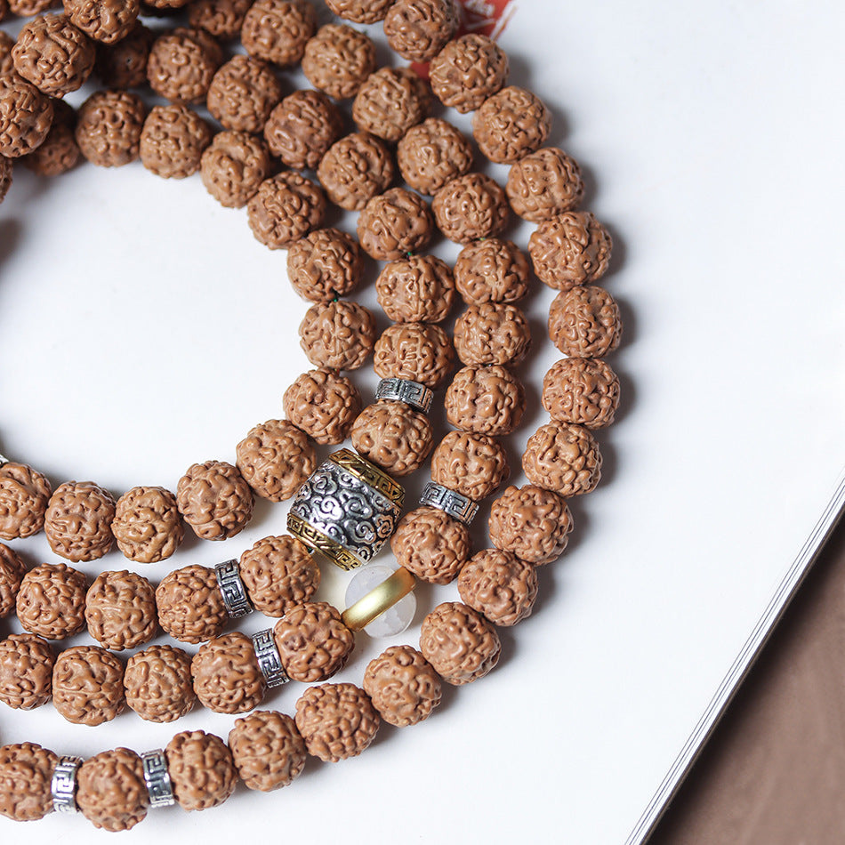 Tibetan Dragon Vein "Exploding"Texture Rudraksha 108 Mala Beads Bracelet