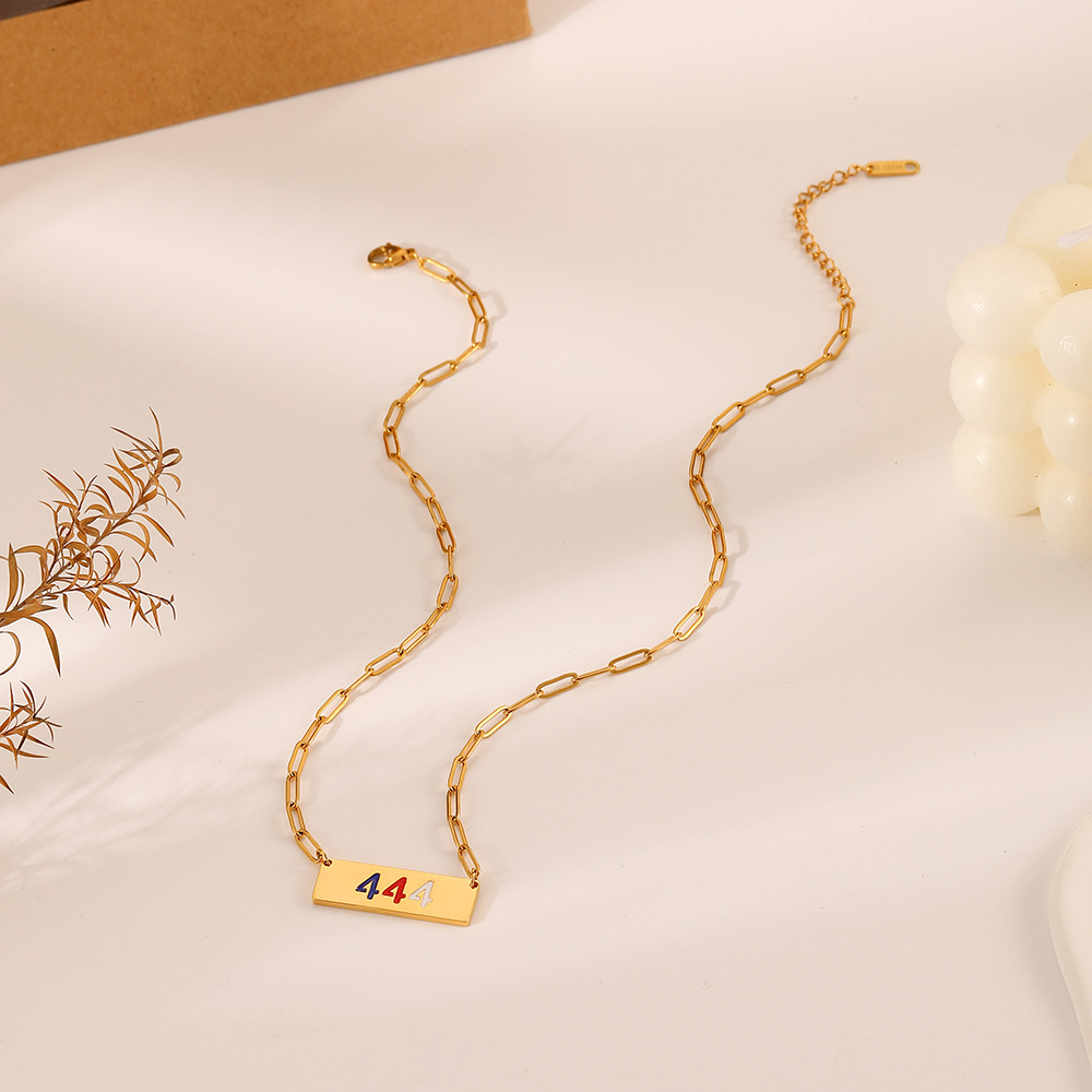 This S925 sterling silver necklace, featuring the angel number 444 in a chic square pendant with color-dripping enamel detail, is more than an elegant accessory—it’s a symbol of guidance, protection, and unwavering inner strength.