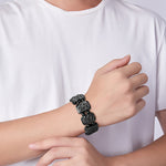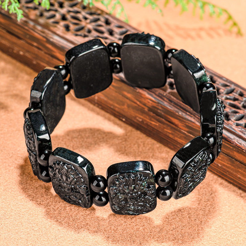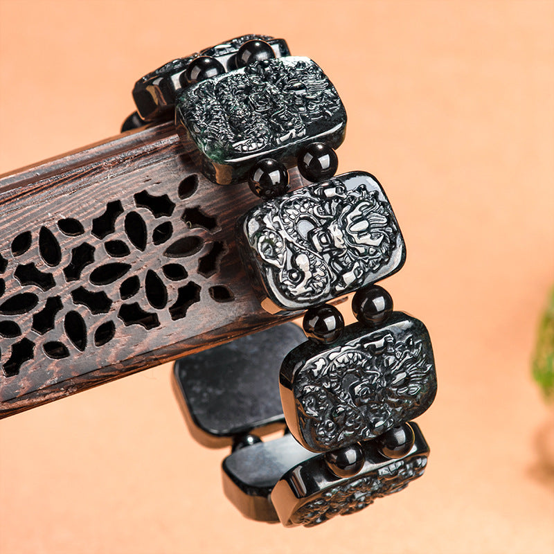 Premium Natural A-Grade Black Jadeite Nine Dragons Guardian Bracelet for Men
