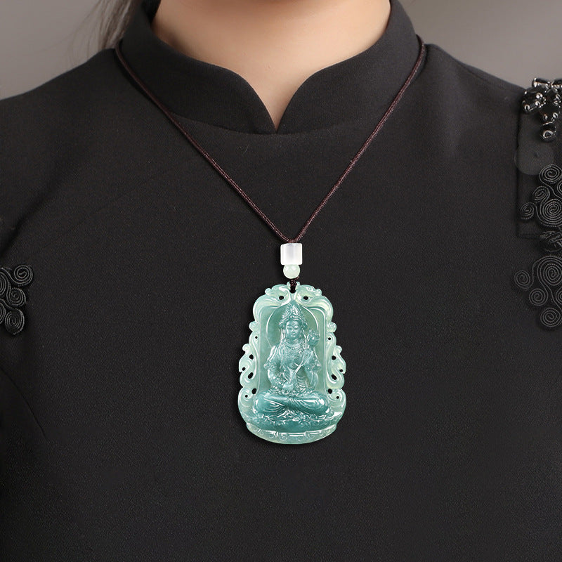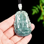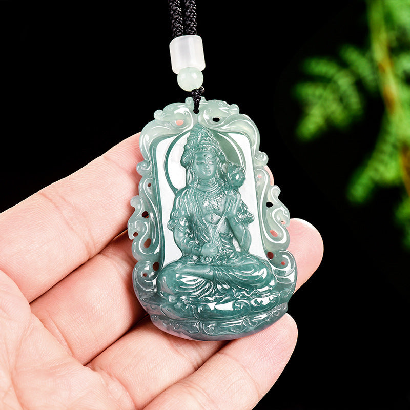 Natural Blue Water Jadeite Mahasthamaprapta Guanyin Pendant – A-Grade Ice-Type Jade, Compassion & Protection Talisman