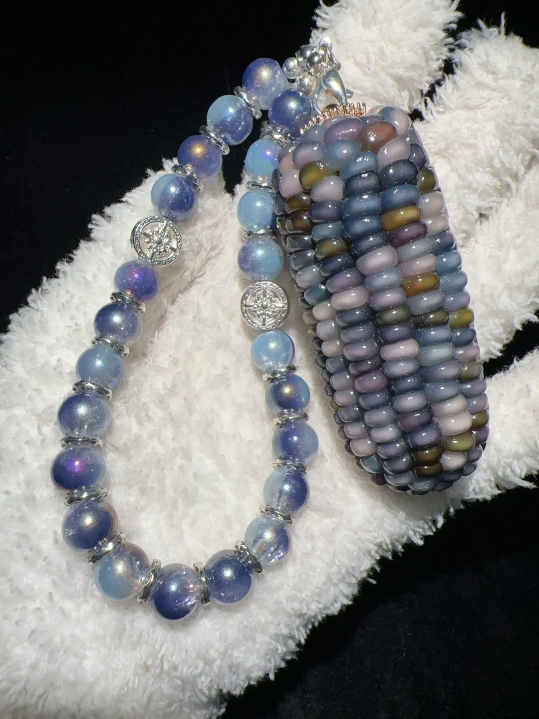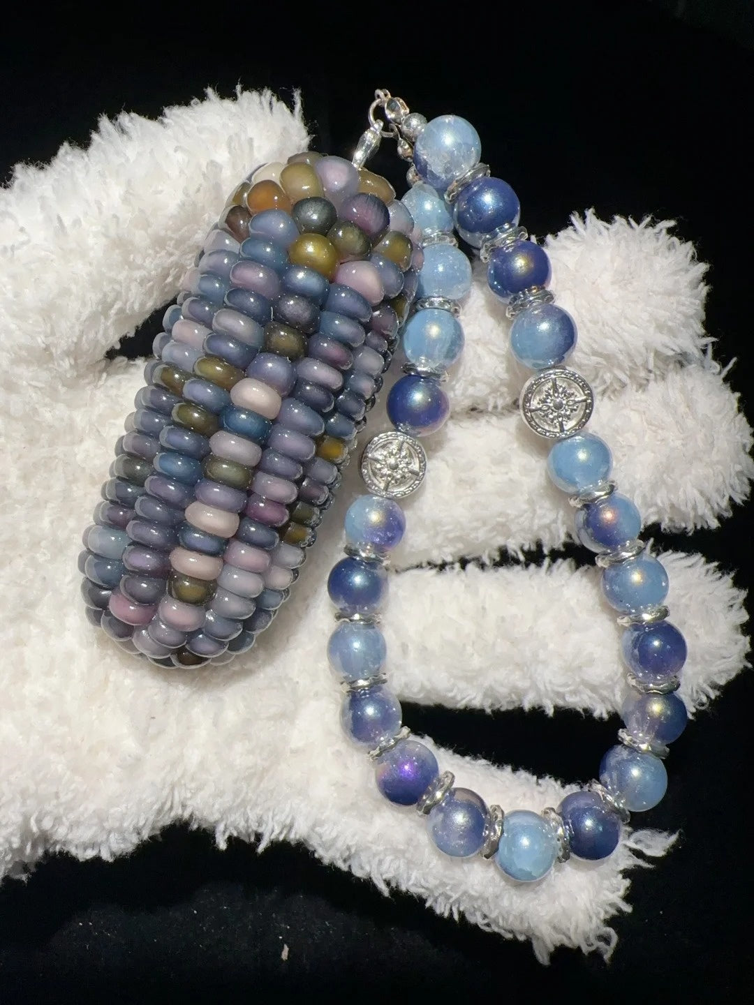 🌽 Made from authentic natural corn kernels with a stunning clear blue inspired by butterfly pea flowers. 🤲 Smooth and lightweight, perfect for fidgeting to ease stress and keep your hands busy. 🎨 Each piece is handcrafted, featuring natural variations that make your charm truly one of a kind. 🎁 Comes with a surprise accessory to brighten your day!