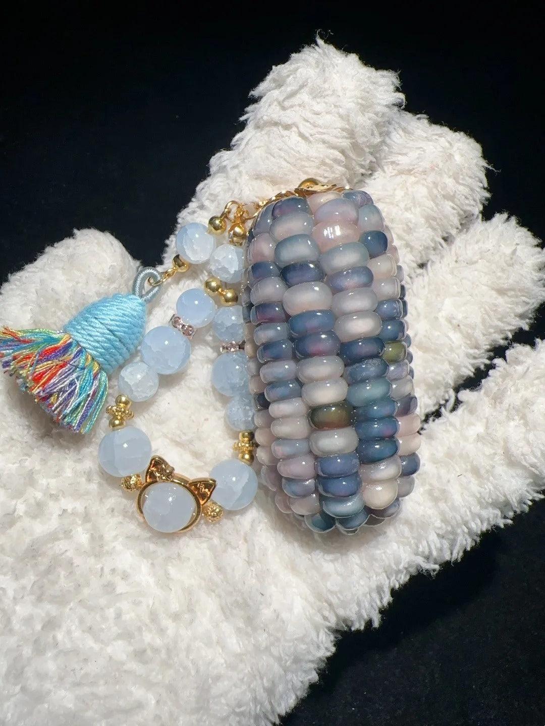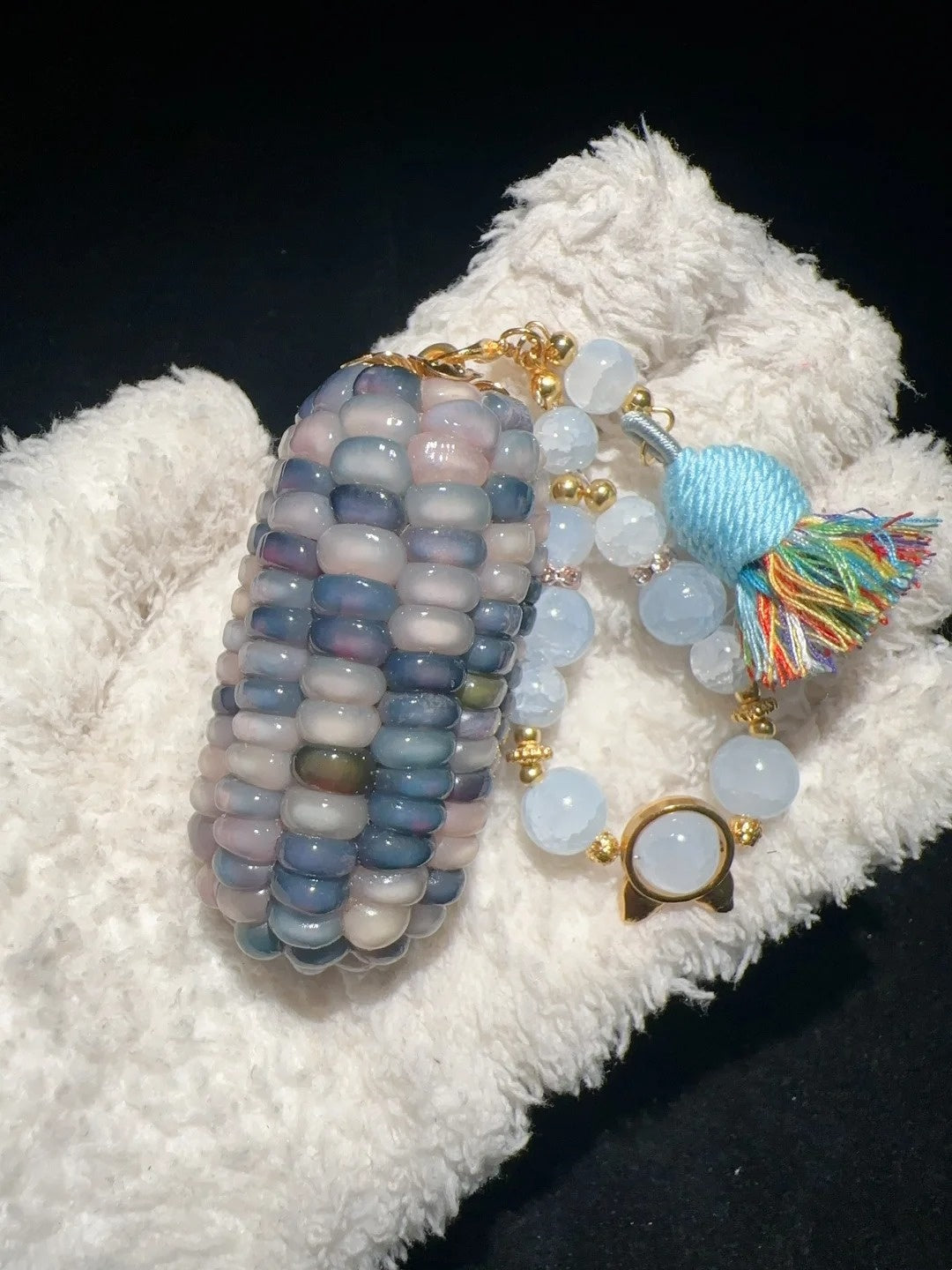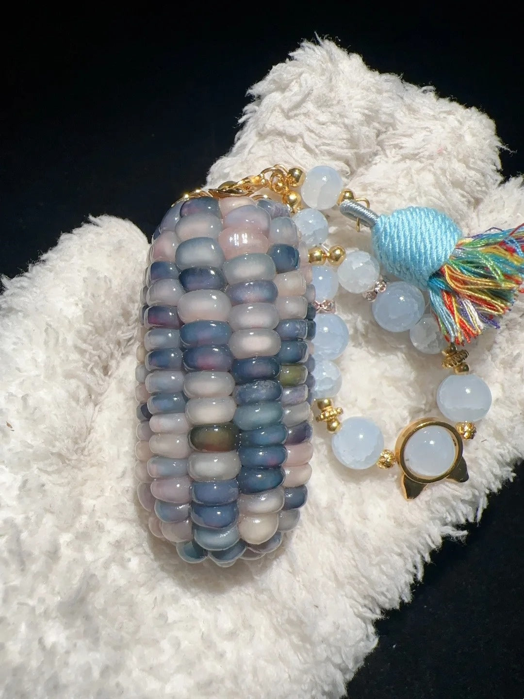 🌽 Handcrafted from real natural corn, each charm features a plump, icy blue glow with a soft jelly-like sheen — like a frozen treat for your fingertips. 🤲 Satisfyingly chunky and smooth to the touch, perfect for fidgeting, grounding, or keeping your hands busy during quiet moments. 🎨 Every piece is handmade, meaning your charm is one of a kind — with natural variations in shape and translucency that make it uniquely yours. 🎁 Comes with a surprise accessory to add a little sparkle to your day!