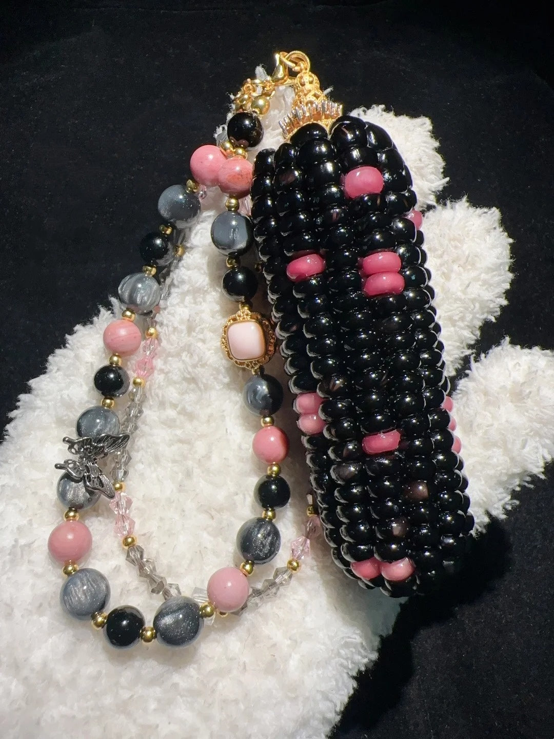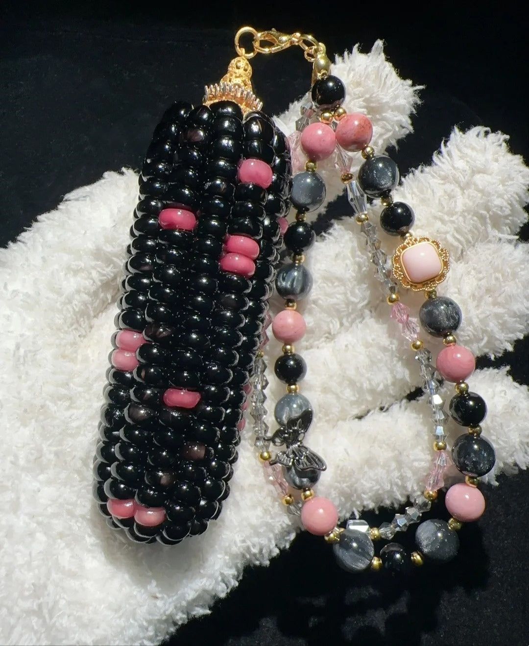 🖤 Meet our Pink-Dotted Black Corn Charms — a unique fusion of bold and cute, designed to calm your mind and keep your hands happily busy!