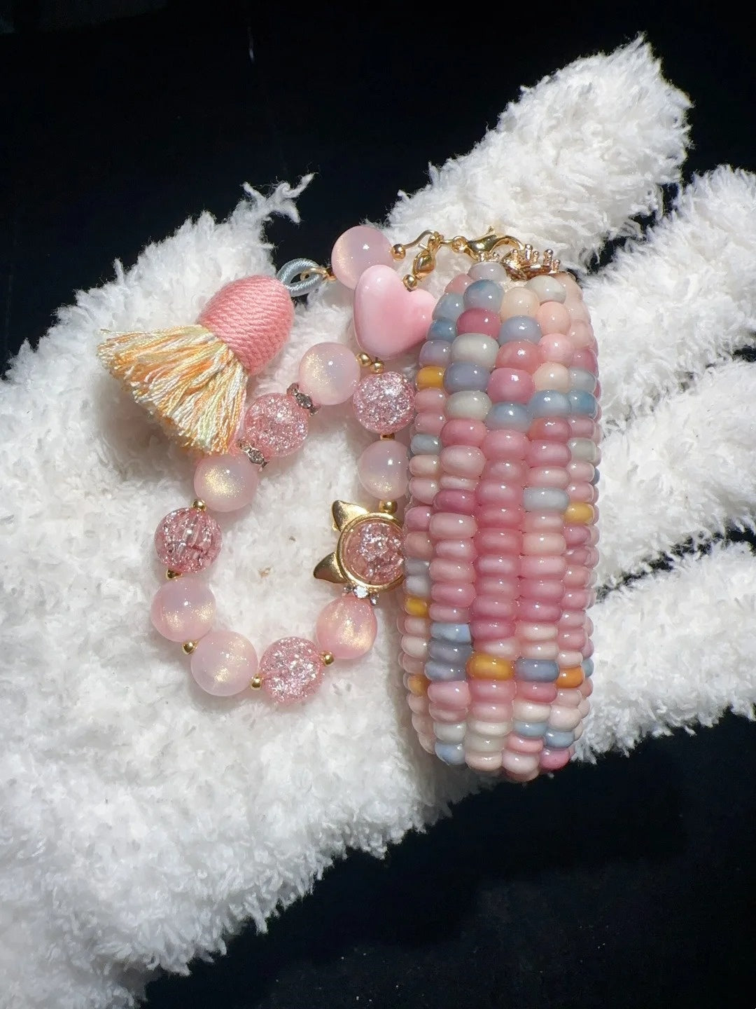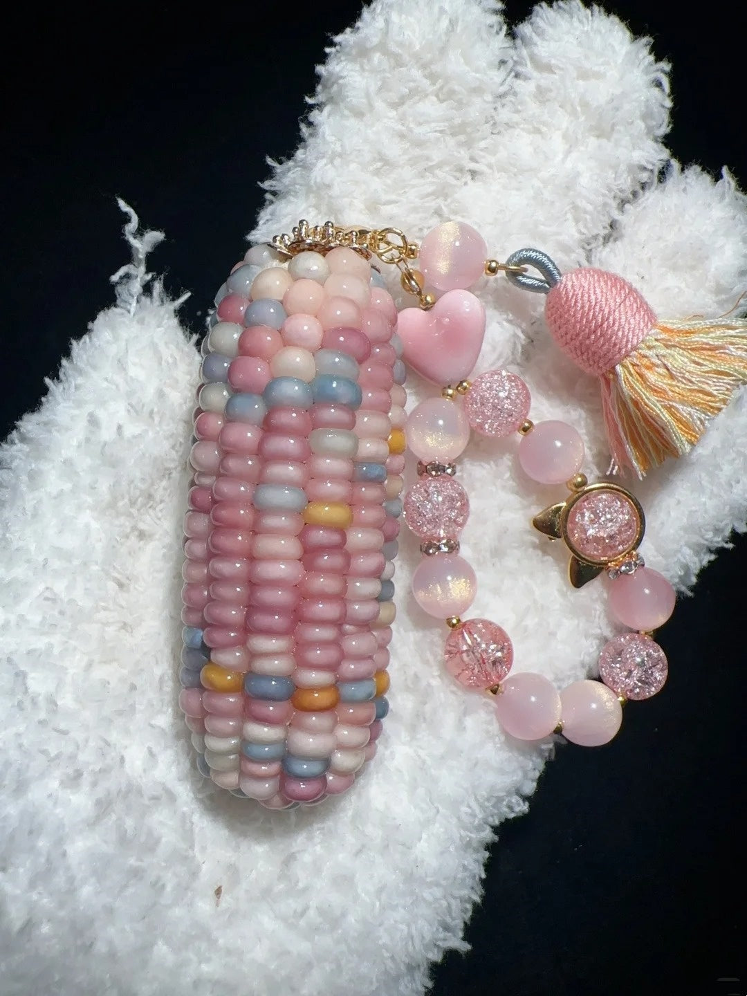 🌽 Made from authentic natural corn kernels in a soft peach-pink hue, bringing a gentle, soothing vibe. 🤲 Perfect for fidgeting and stress relief, keeping your hands busy and your mind calm. 🎨 Each piece is handcrafted, with unique variations that make every charm one of a kind. 🎁 Includes a surprise accessory with every order for a small daily delight!