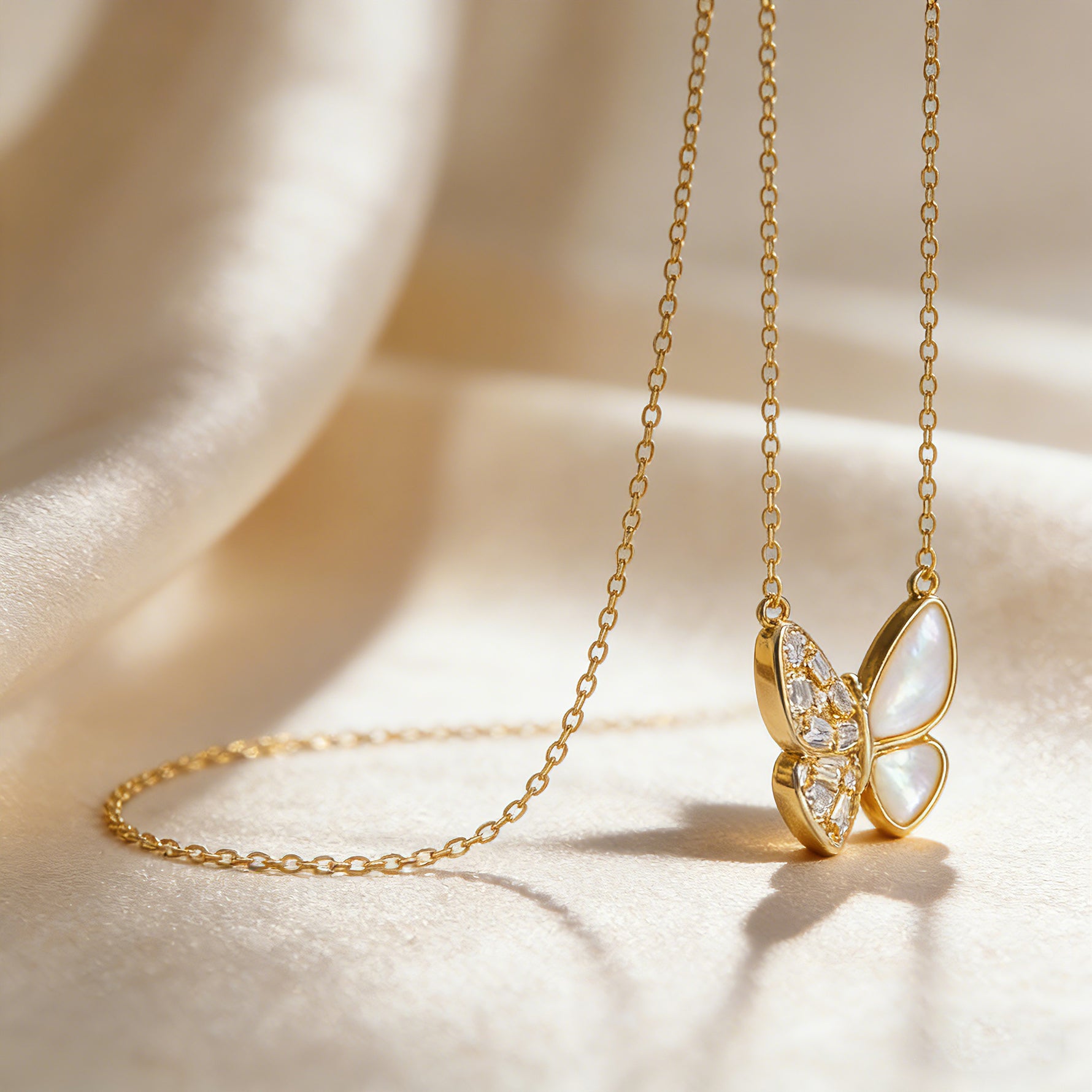 White Mother-of-Pearl Butterfly Necklace with Sparkling Zircon Stones