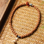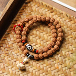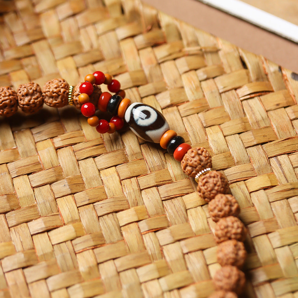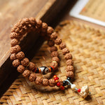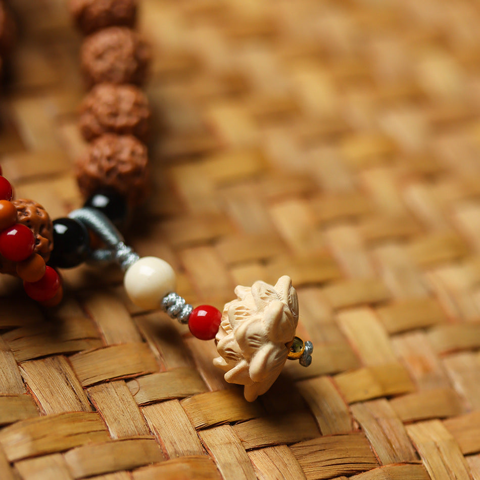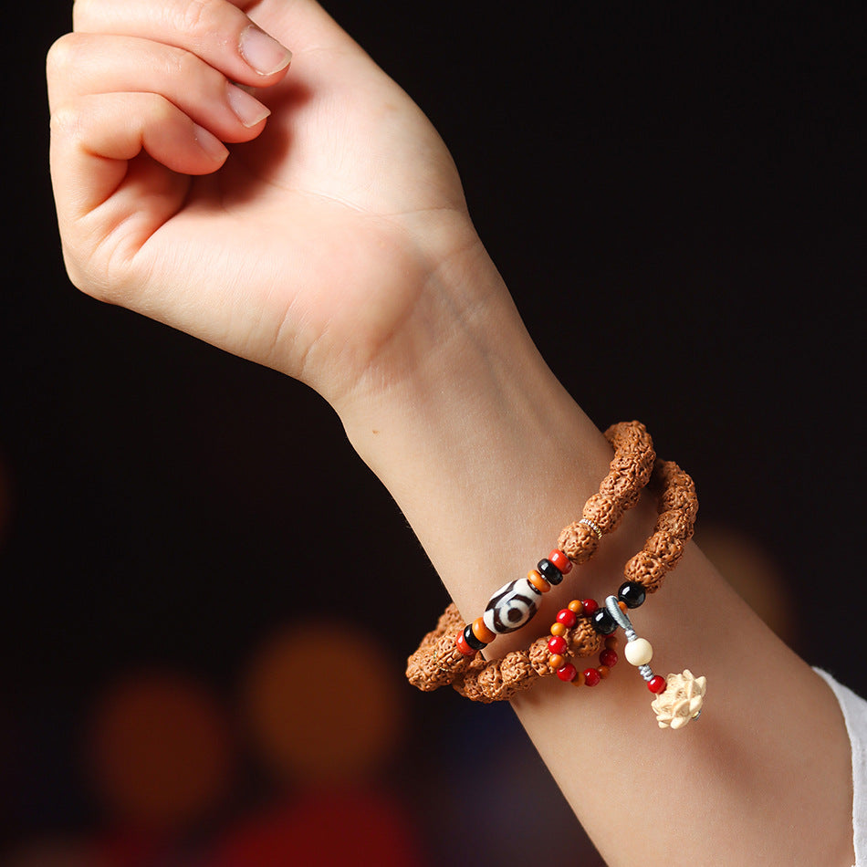 Original Form Small Rudraksha Double Wrap Bodhi Bracelet with Boxwood Carved Lotus Pendant