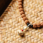 Spiritual Symbolism Rudraksha beads symbolize strength, protection, and spiritual awakening. Their untouched, original form deepens your connection to nature and simplicity. The boxwood lotus pendant represents purity and enlightenment, gracefully supporting your spiritual journey.