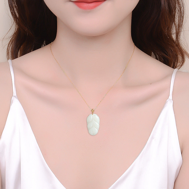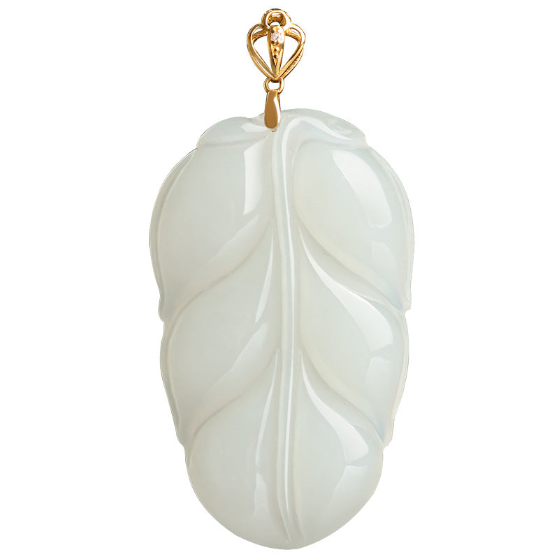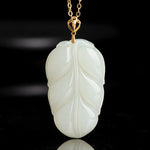 This Natural Aged Hetian White Jade Gold Branch & Jade Leaf Pendant for Women elegantly captures the essence of grace and nobility. Carved from authentic aged Hetian white jade, the pendant features a delicate leaf design symbolizing refinement and excellence. The “Gold Branch & Jade Leaf” motif is traditionally associated with cultured, noble, and outstanding women. Wearing this pendant highlights a woman’s elegant, fresh, and dignified temperament.