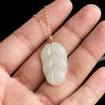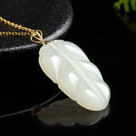 Natural Aged Hetian White Jade Gold Branch & Jade Leaf Pendant for Women