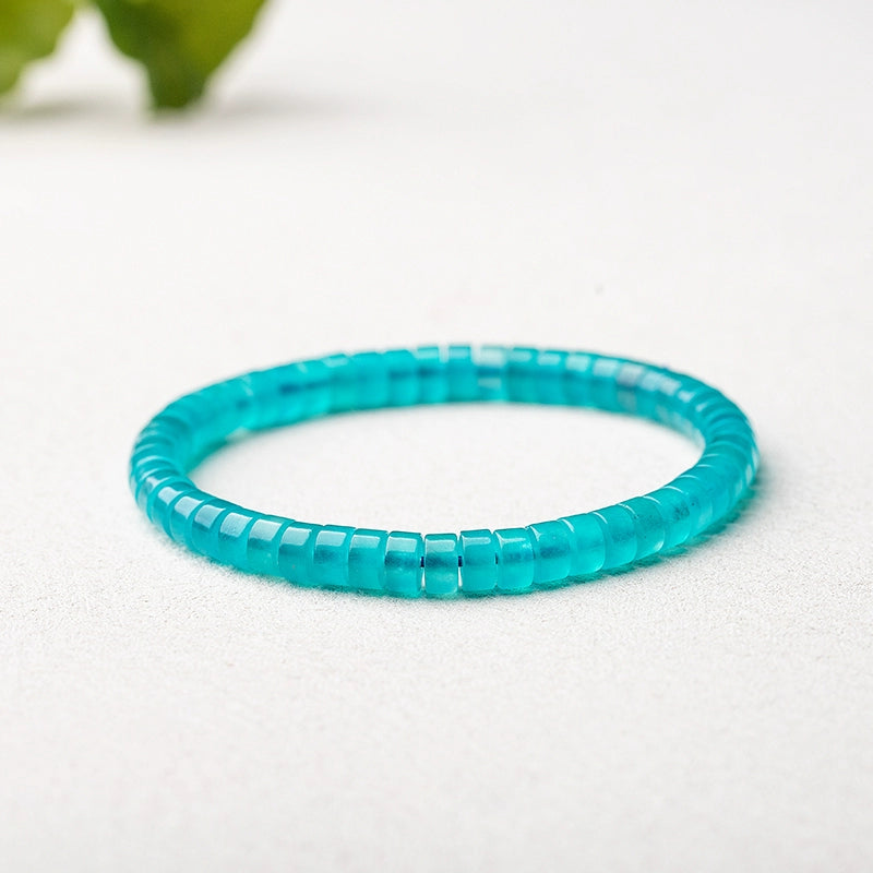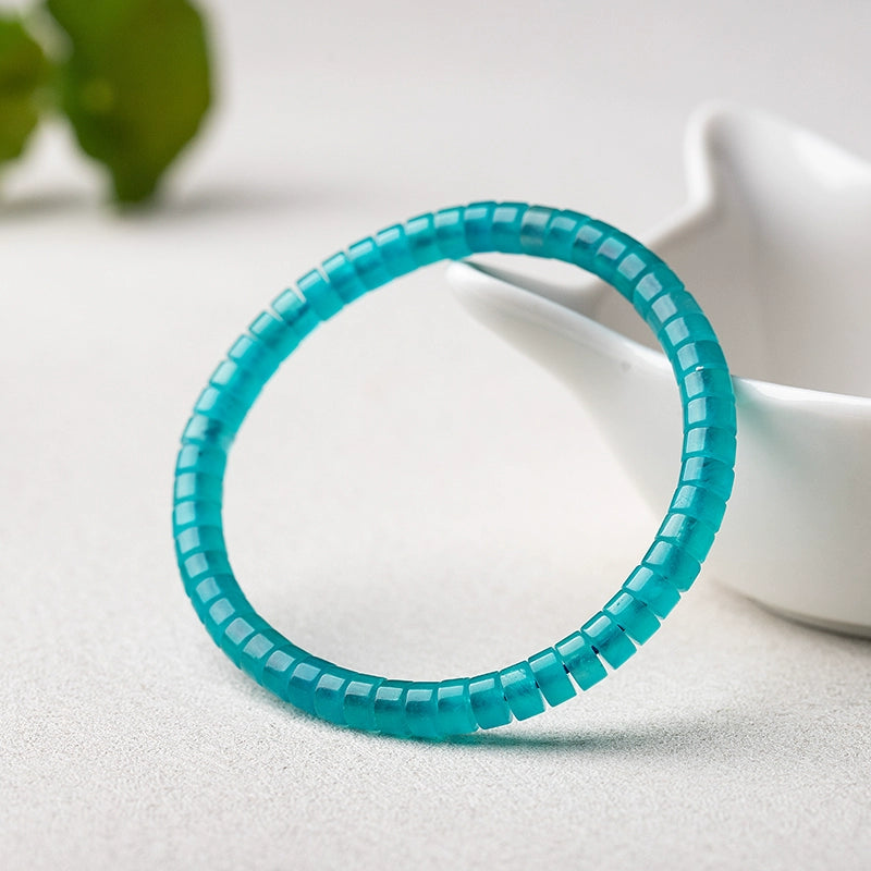 Our Natural Amazonite Bracelet features meticulously straight-cut thin slice beads, showcasing the serene blue-green hues unique to this gemstone. Each bead is finely polished to create a smooth, elegant finish, making this bracelet an ideal accessory for anyone who appreciates natural beauty and refined craftsmanship.