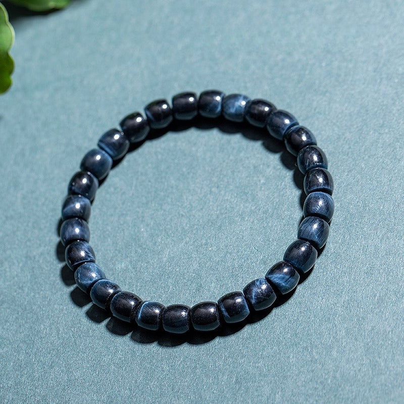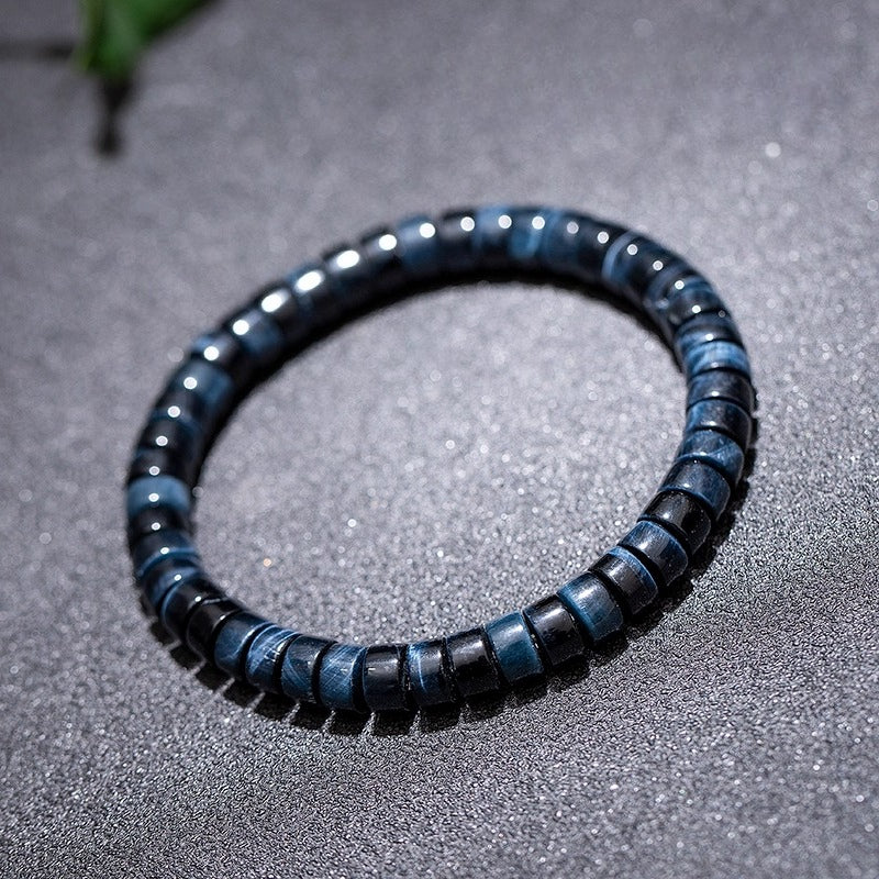 Natural Blue Tiger’s Eye Lightning-Pattern Bracelet – Premium Straight-Cut Design, 7mm, Unisex, Multiple Bead Shapes Available
