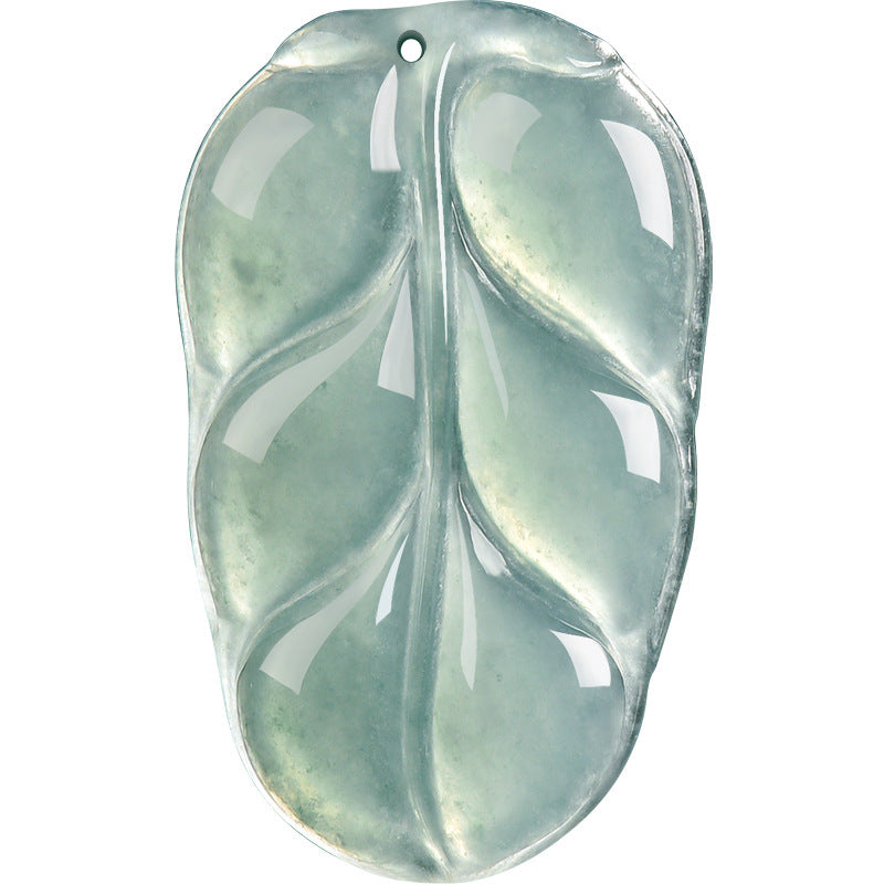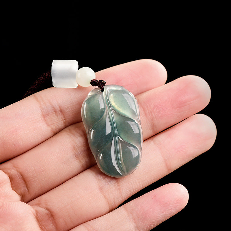Natural Blue Water Jadeite Leaf Pendant – A-Grade Jade, Elegant Spiritual Necklace