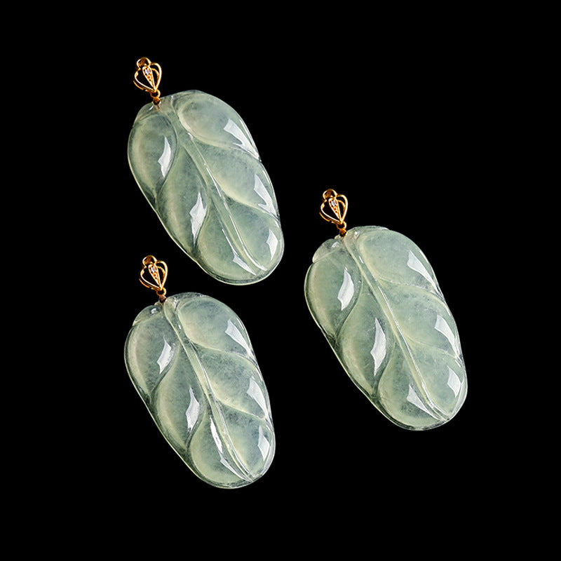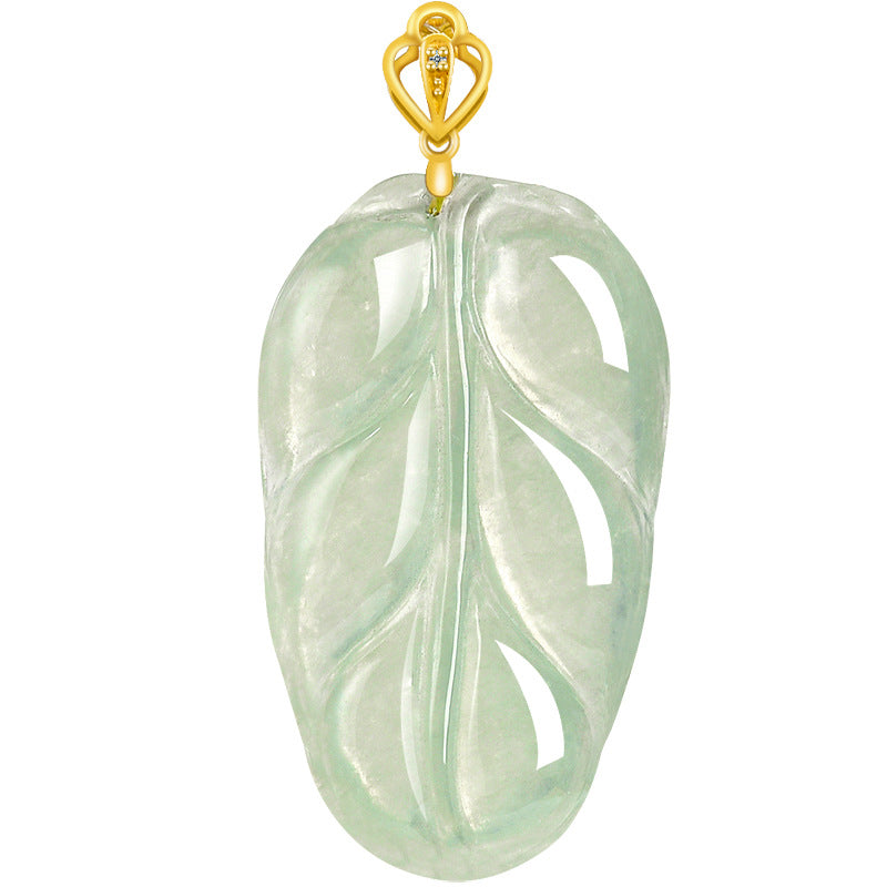 Embrace elegance and spiritual renewal with this natural jadeite leaf pendant, crafted from certified A-grade blue water jade and adorned with an 18K gold bail. The leaf symbolizes growth, vitality, and new beginnings—making it a meaningful accessory for those seeking harmony, rejuvenation, and prosperity. With its translucent texture and graceful form, this pendant beautifully captures the essence of nature’s life force.