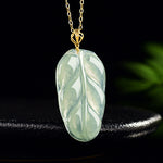 Natural Blue Water Jadeite Leaf Pendant with 18K Gold – A-Grade Jade, Elegant Symbol of Growth & Renewal