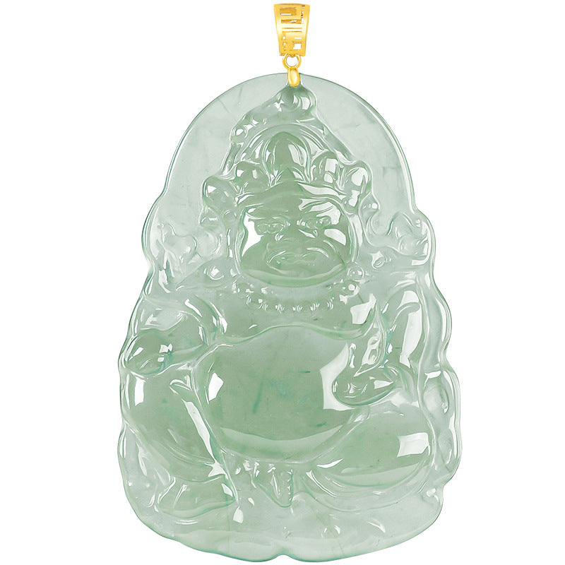 Natural Blue Water Jadeite Yellow Wealth God Pendant – A-Grade Ice-Type Jade, 18K Gold, Prosperity Talisman