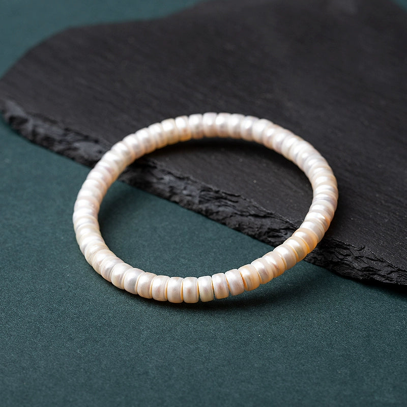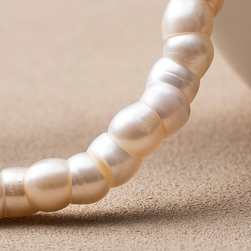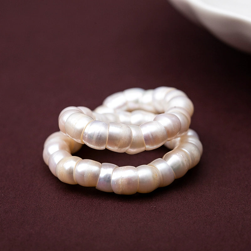 Our Natural Freshwater Pearl Bracelet Collection features exquisitely handcrafted beads in two refined styles: straight-cut thin slices and Tibetan-style diagonal cuts. The lustrous pearls display a soft, elegant glow, highlighting the delicate craftsmanship and timeless appeal of natural freshwater pearls. Perfect for women who appreciate light luxury and sophisticated, fashionable accessories.