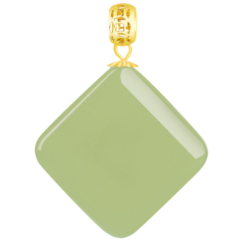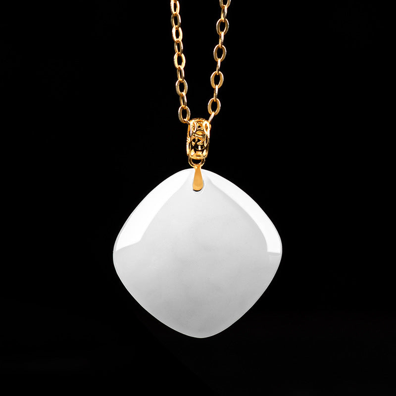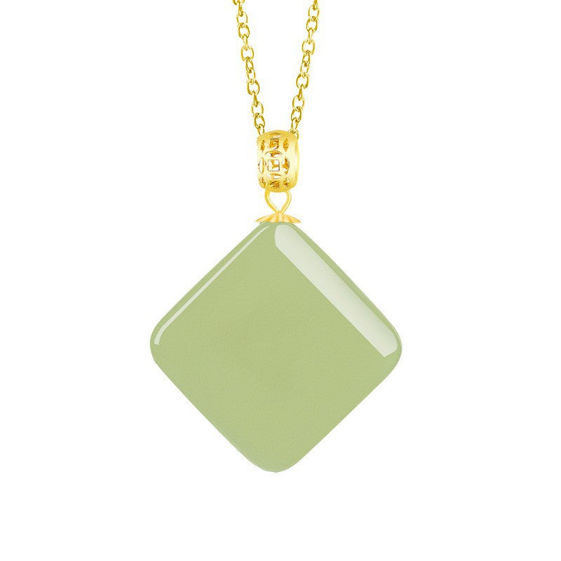 The square form represents stability and grounded energy, while Hetian jade is treasured for promoting peace, protection, and gentle strength.