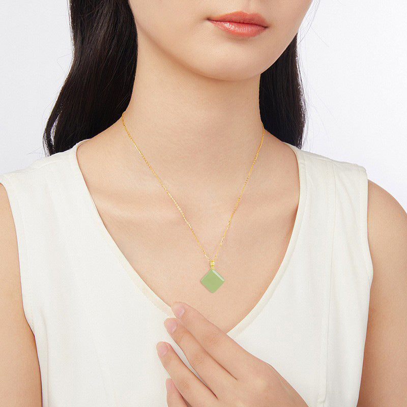 Grace your look with the minimalist elegance of this Natural Hetian Jade Square Pendant Necklace for Women. Crafted from authentic Hetian jade, this petite square-shaped pendant—affectionately known as the “sugar cube jade”—embodies purity, serenity, and refined charm. Its smooth surface and soft luster capture the gentle beauty of jade, symbolizing inner peace and lasting balance. Paired with a 45cm sterling silver chain, this piece blends modern simplicity with timeless grace—perfect for women who appreciate quiet sophistication and meaningful design.