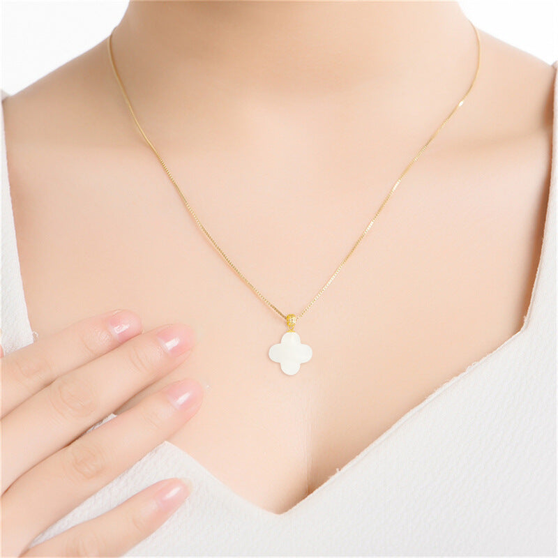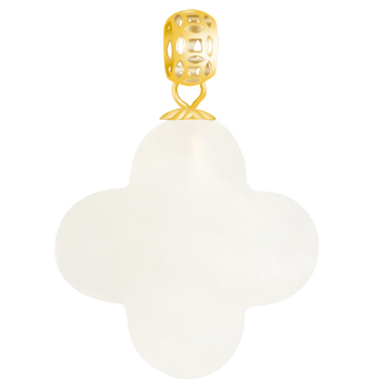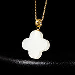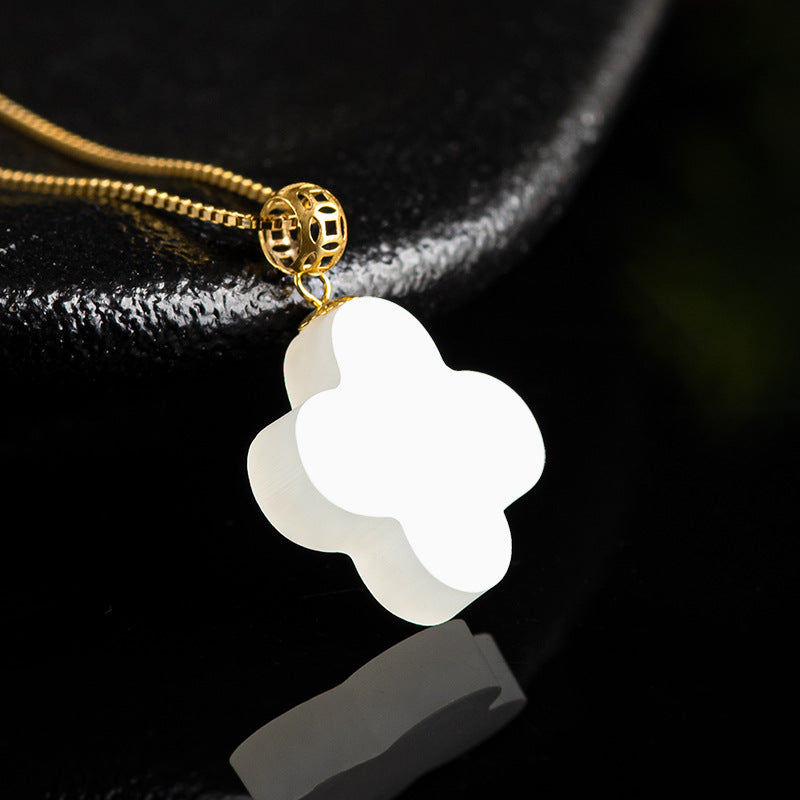 Natural Hetian White Jade Four-Leaf Clover Pendant for Men & Women