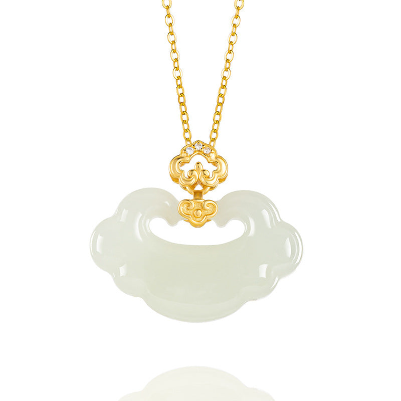 Natural Hetian White Jade Ruyi Lock Pendant – Talisman of Protection & Peace