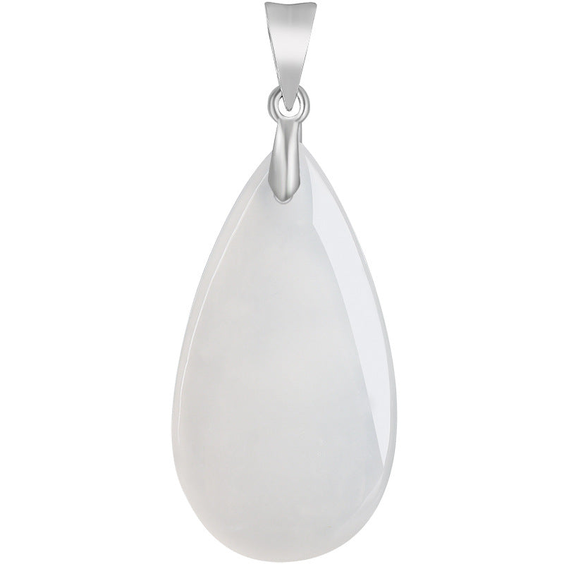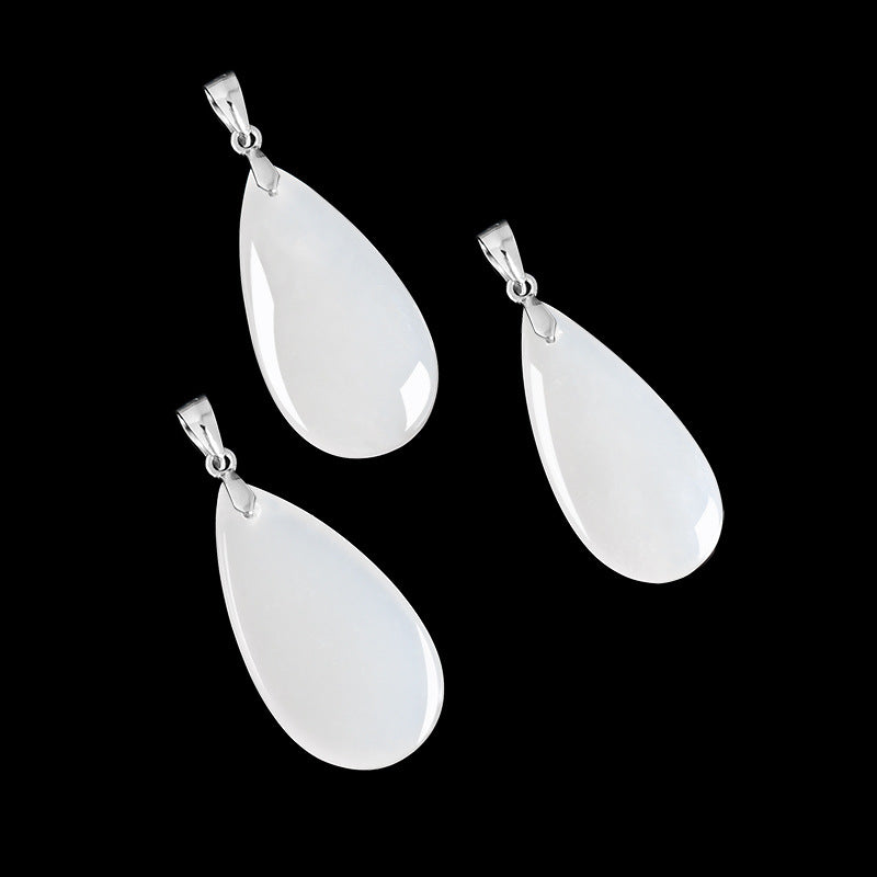 The teardrop shape symbolizes emotional release, healing, and renewal. White jade is revered for its calming energy, promoting peace of mind, balance, and protection from negativity. This pendant serves as a personal talisman for emotional clarity and spiritual harmony.
