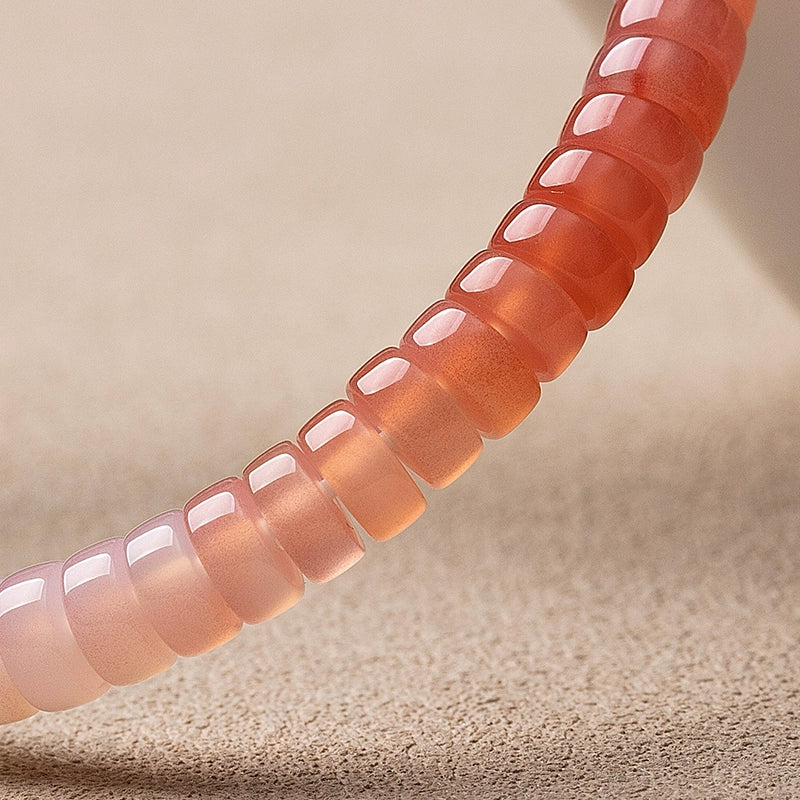 Red Agate is cherished for its deep crimson hues, symbolizing courage, vitality, and stability. Green Strawberry Quartz is prized for its clear, refreshing green tones and gentle energy. Together, these gemstones create a harmonious gradient that blends passion with serenity, making each bracelet unique.
