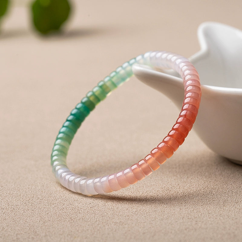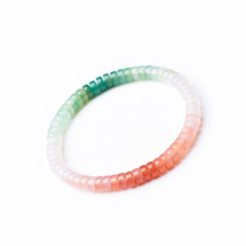 Natural Red Agate & Green Strawberry Quartz Gradient Multi-Gemstone Thin Slice Bracelet