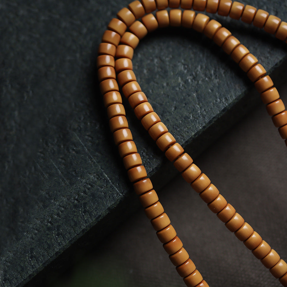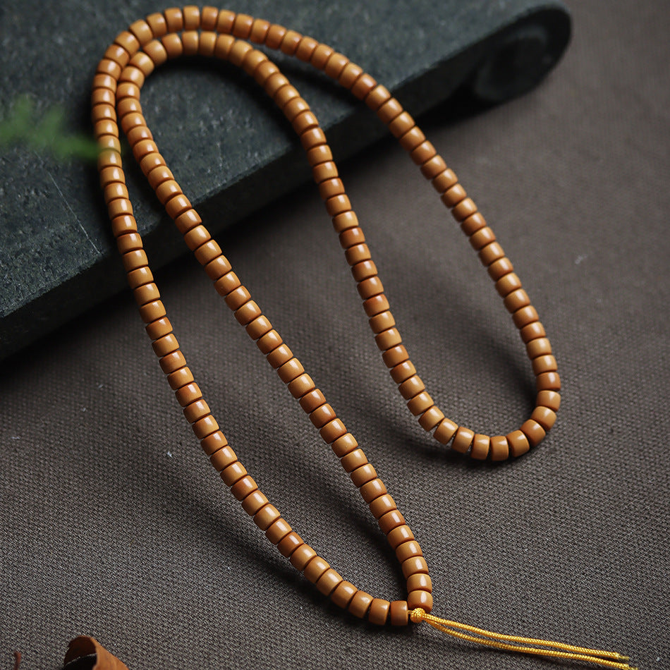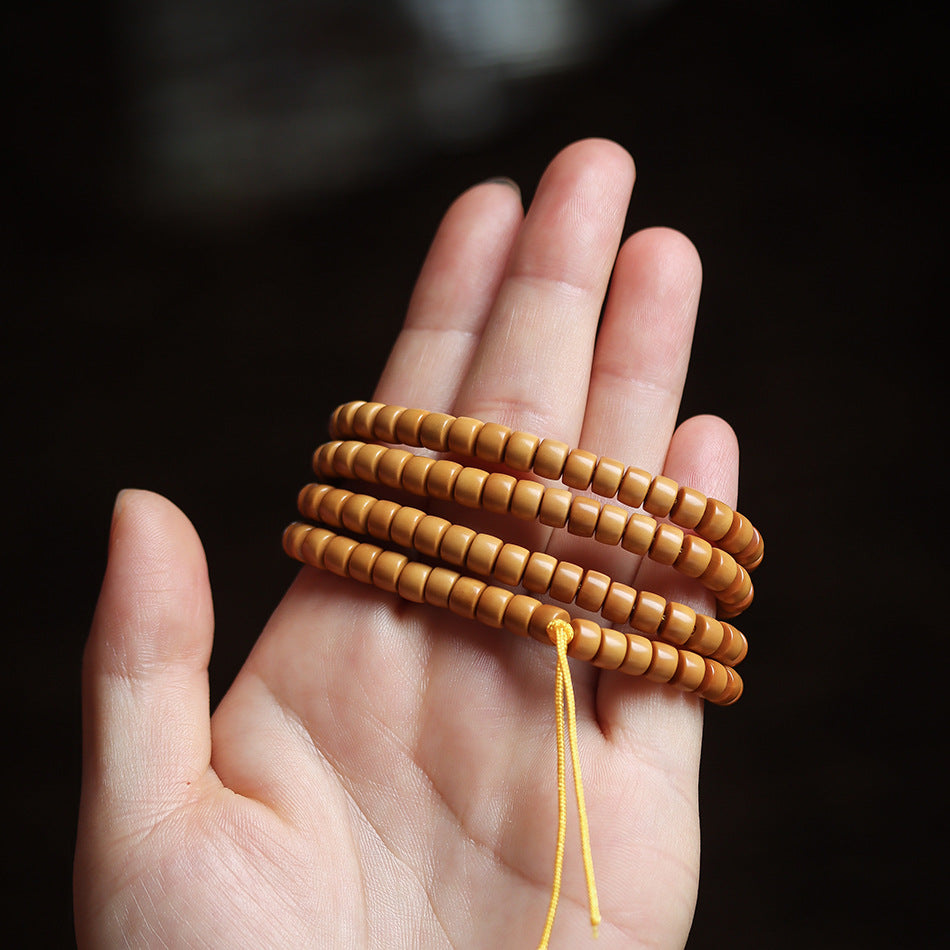 Wenwan Thick-Sliced Olive Pit Apex 108 Mala Beads Bracelet