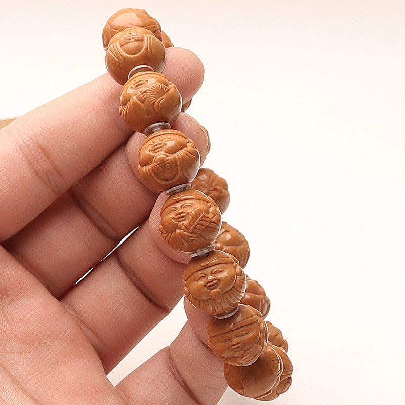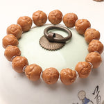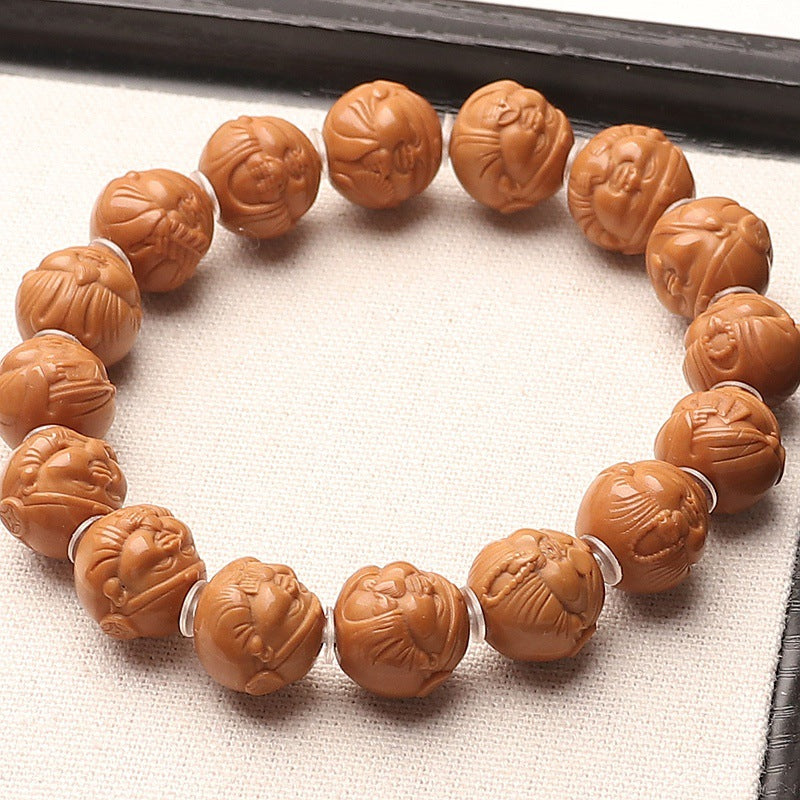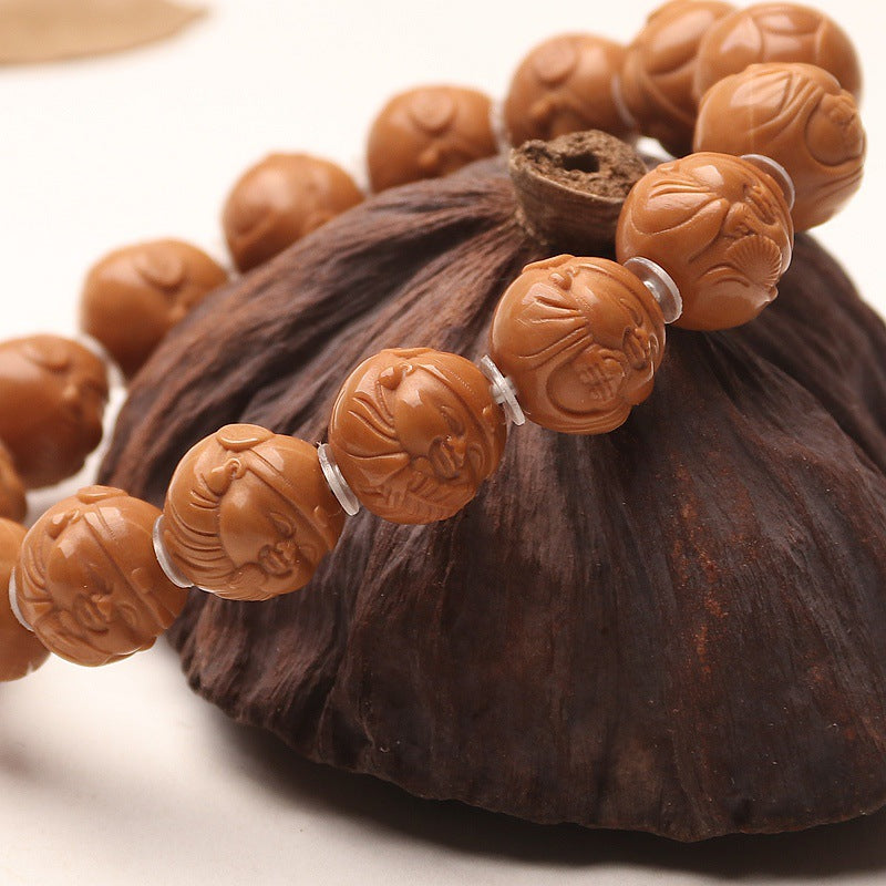 Hand-Carved Monkey Head Walnut "Fortune God" Bracelet