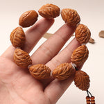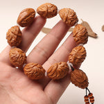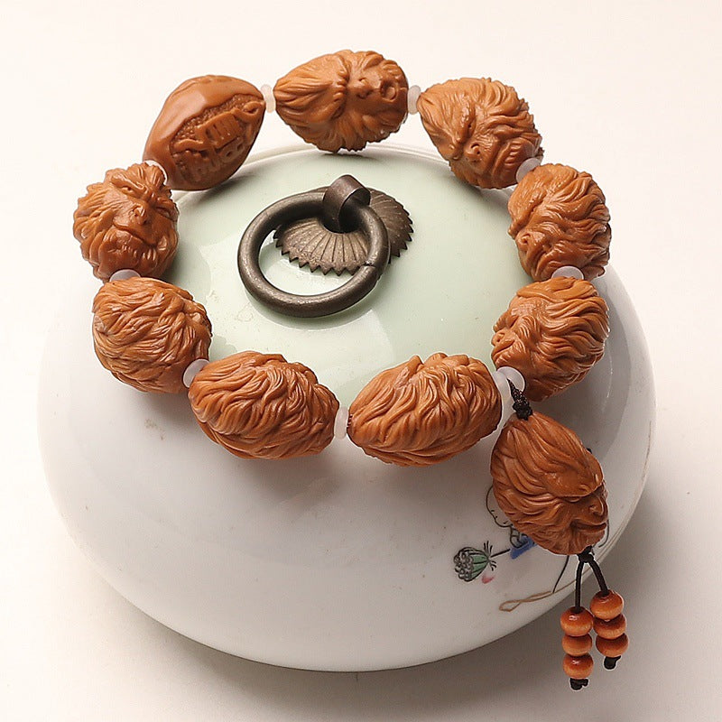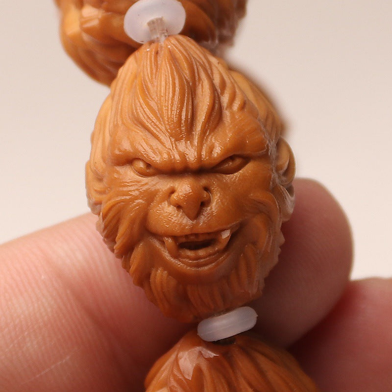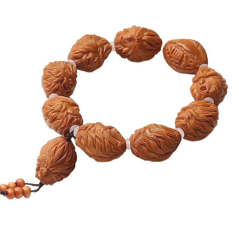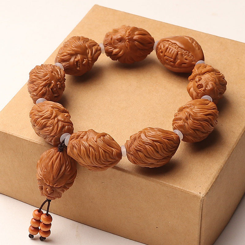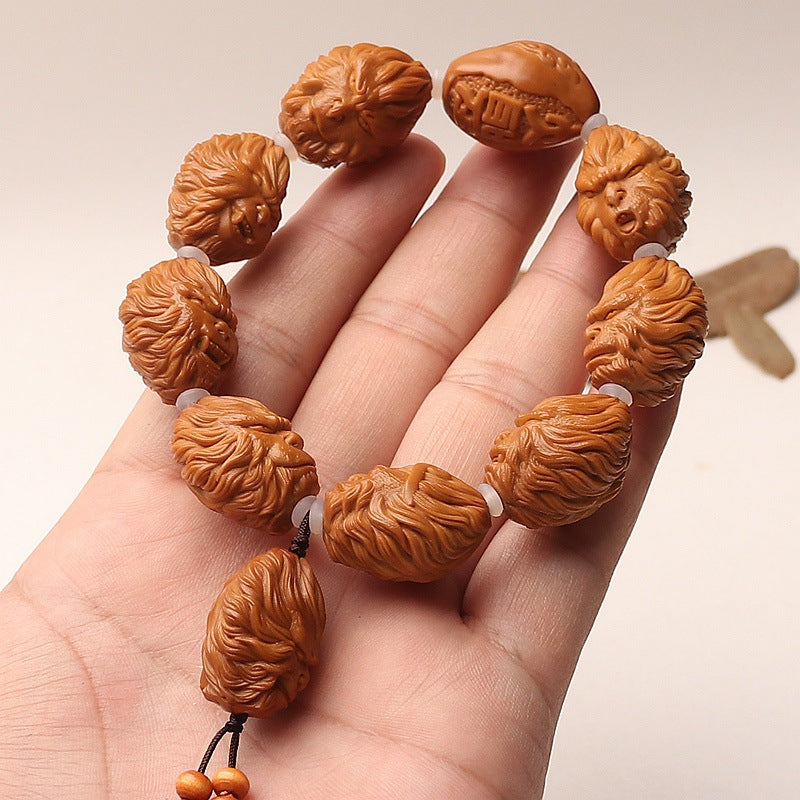Hand-Carved Olive Pit Bracelet Featuring Sun Wukong Design