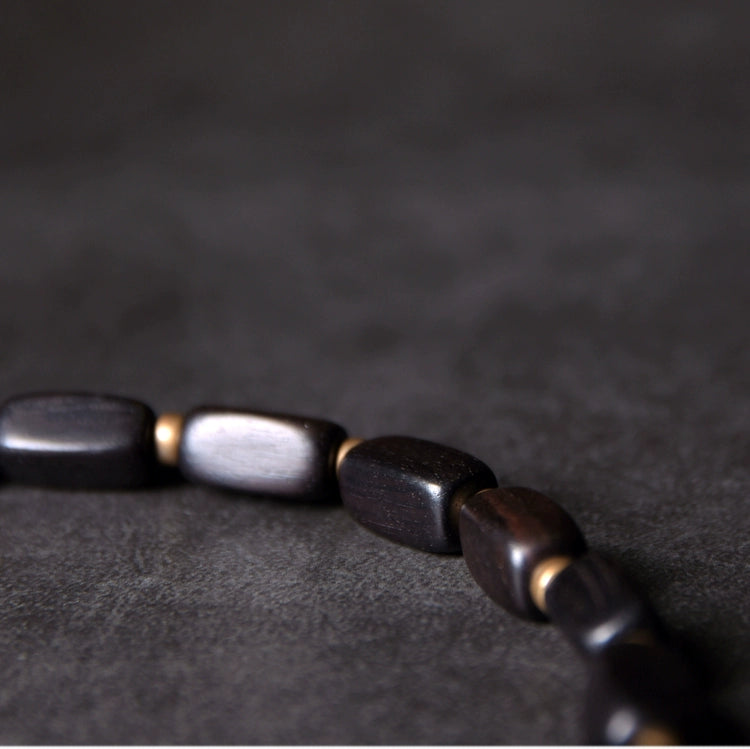 This double-wrap bracelet blends tradition and strength with a refined, masculine touch. Handcrafted with natural ebony wood beads, accented by a Tibetan Dzi bead and vintage brass spacers, it carries deep symbolic meaning rooted in ancient culture.