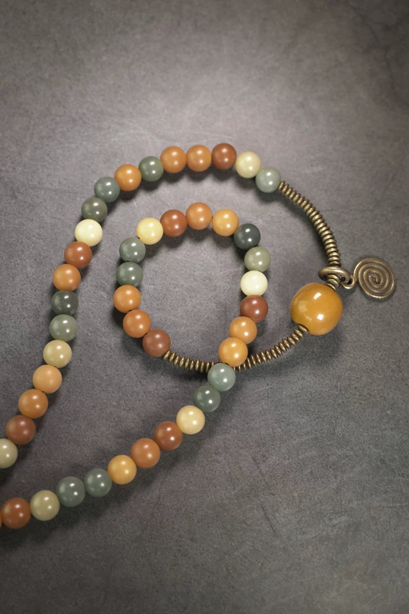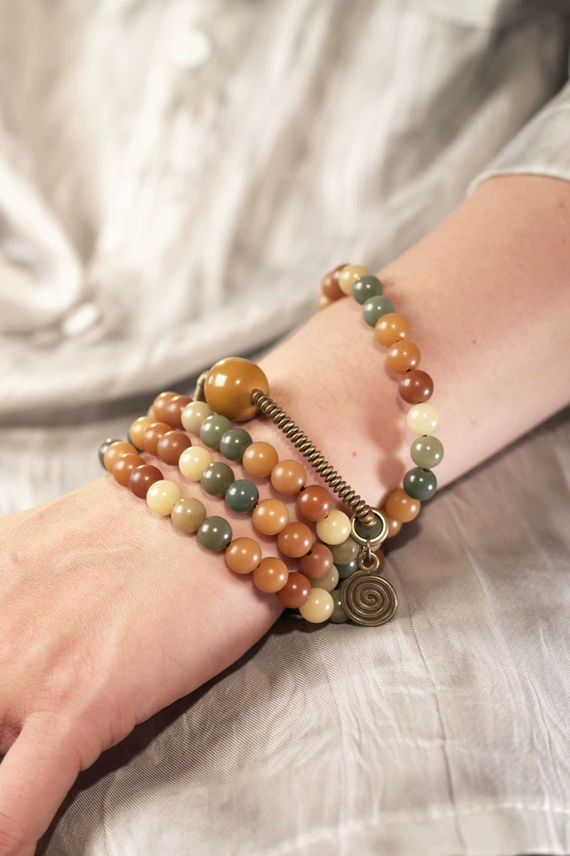 Bodhi Beads: Sourced from the sacred Bodhi tree, these beads symbolize spiritual awakening, mindfulness, and inner peace. They serve as gentle reminders to stay present and centered throughout your day.