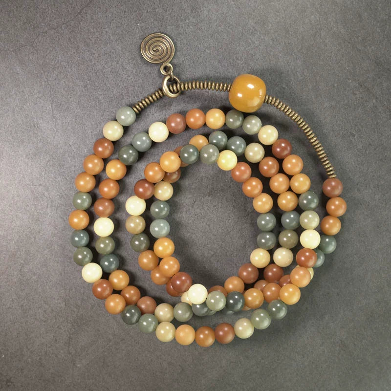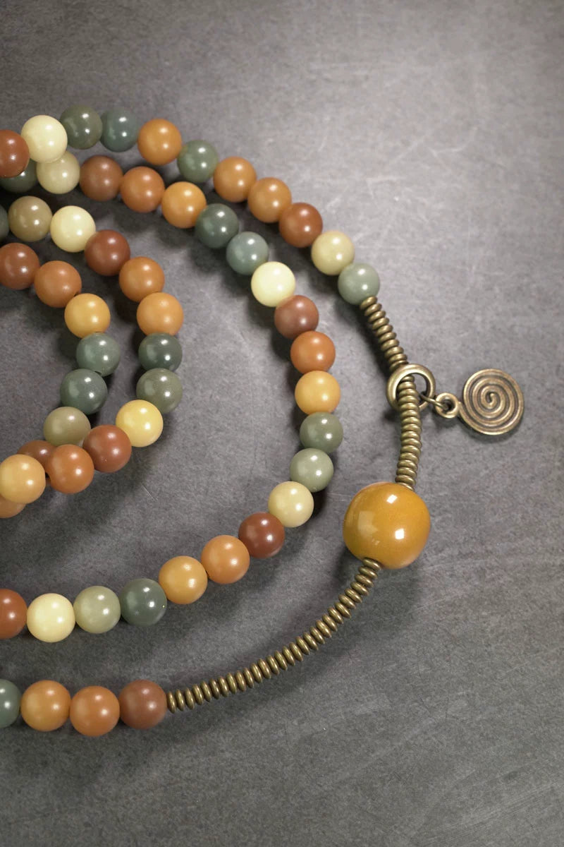 Bring peace and color into your everyday life with this Multi-Colored Bodhi Bracelet, crafted with naturally dyed Bodhi seeds and vintage-style brass spacers. This versatile bracelet can be wrapped around the wrist or worn as a necklace — a beautiful blend of grounding energy and artistic expression.