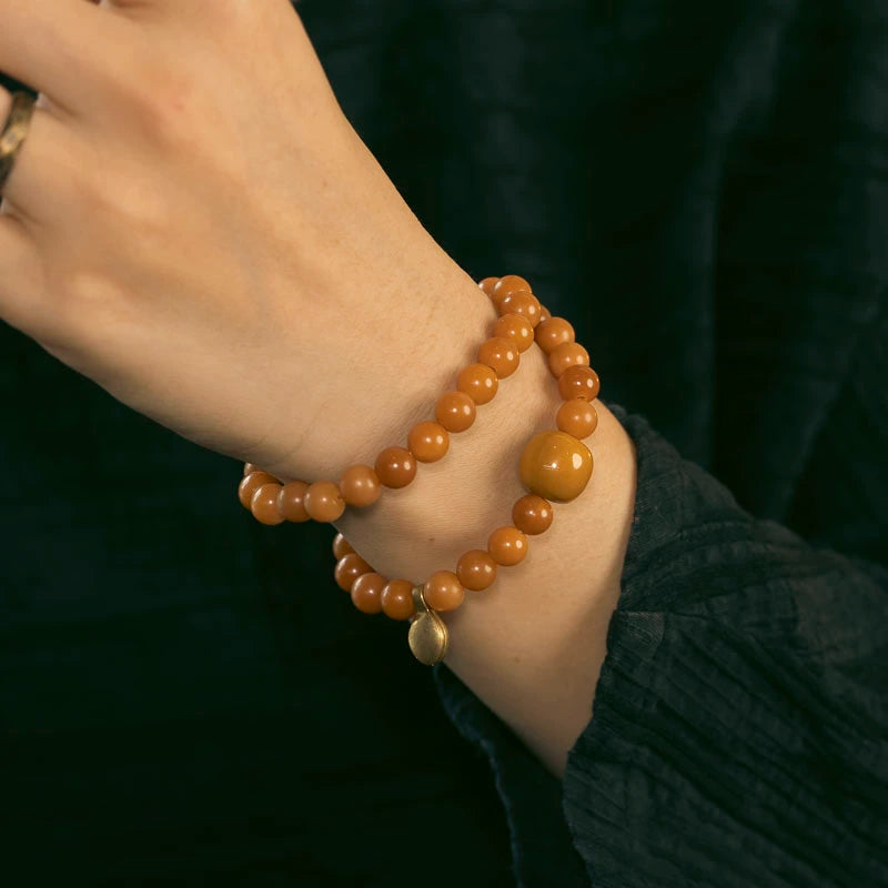 Bring warmth and grounded energy into your daily life with this Yellow-Brown Bodhi Bracelet, handcrafted with naturally toned Bodhi seeds and vintage-style brass spacers. Designed as a double wrap, it can be styled as a layered bracelet or a single-strand necklace — versatile, meaningful, and effortlessly earthy.