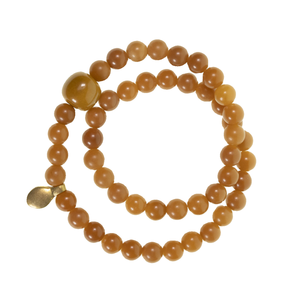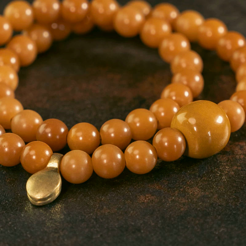 Natural Yellow-Brown Bodhi Double Wrap Bracelet with Brass Accents