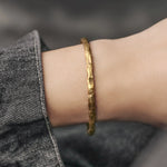 This handcrafted Tibetan brass cuff bracelet features a unique raised and recessed textured pattern, inspired by traditional Himalayan artistry. Its antique finish and bold lines represent resilience, grounding, and timeless beauty, making it a powerful accessory for both men and women.