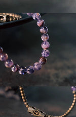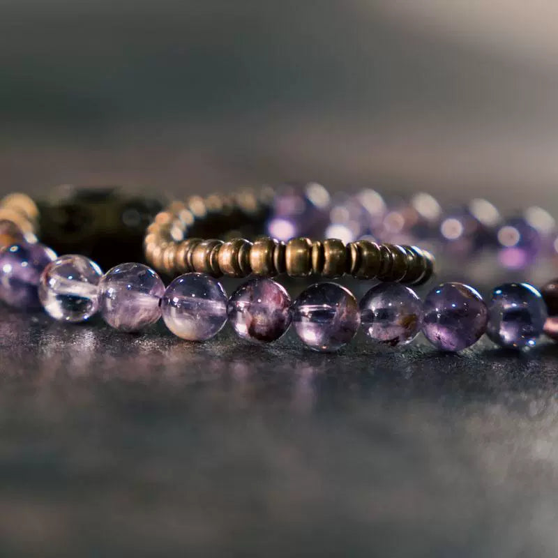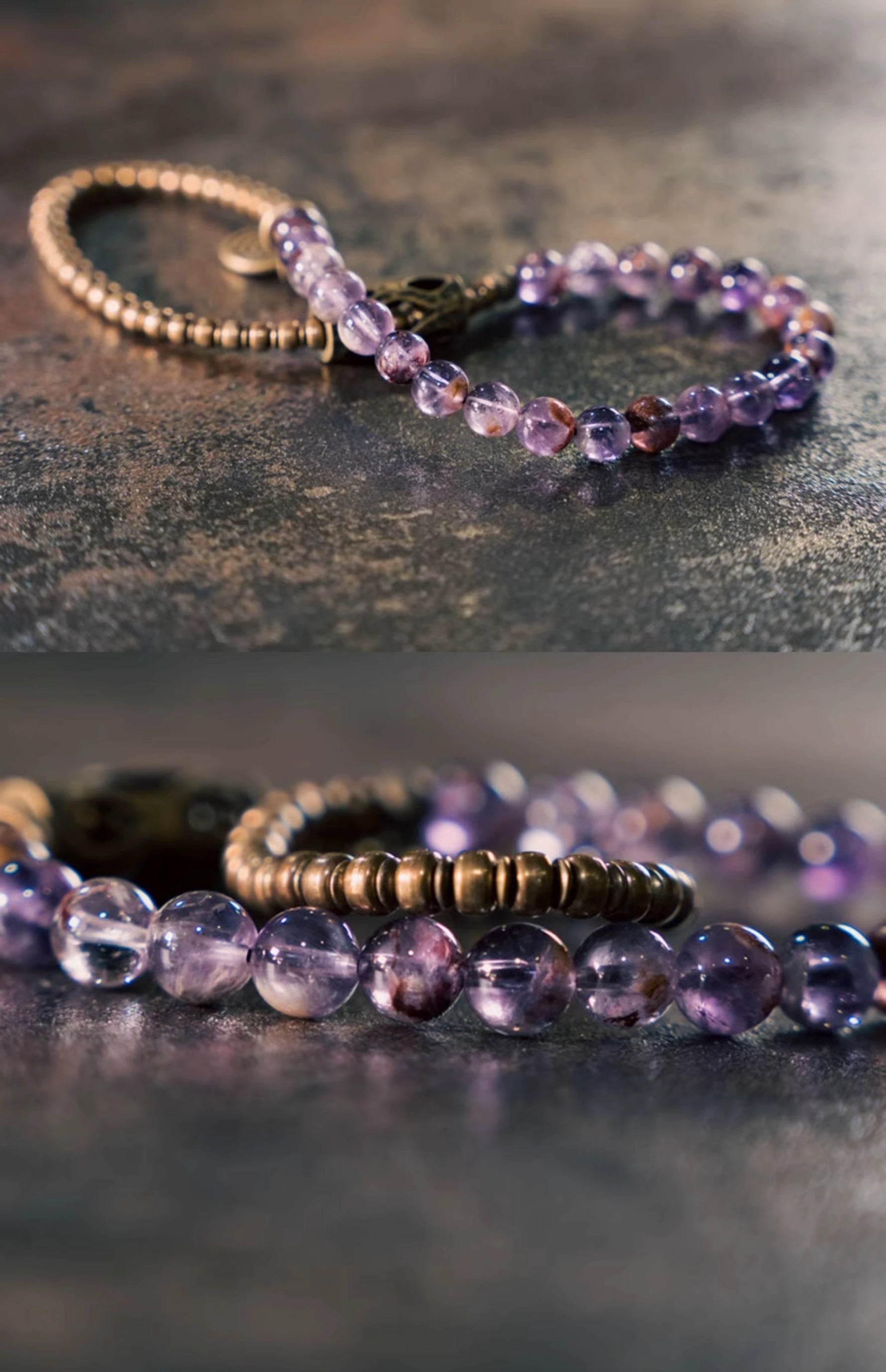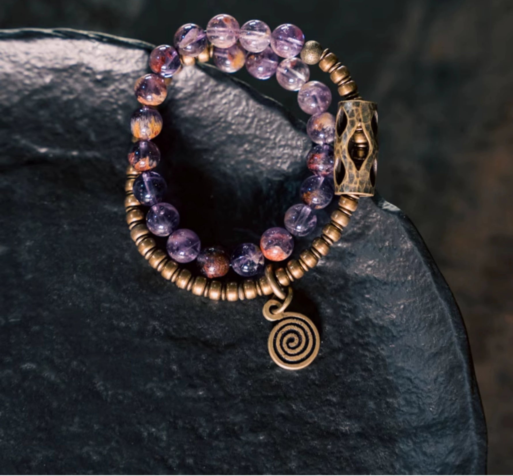 📿 Material: 8mm phantom amethyst (purple ghost quartz), antique-finish brass spacers