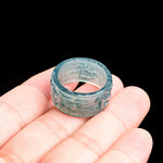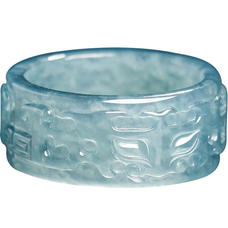 Natural A-Grade Blue Water Jadeite Taotie Ancient-Style Ring – Ice-Type Jade, Unisex Couple's Ring