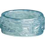 This exquisite natural A-grade blue water jadeite Taotie ring blends traditional artistry with contemporary elegance. Carved from high-quality, untreated jadeite, the ring features a Taotie motif, a symbol of strength and protection in ancient Eastern culture. The smooth, ice-type jade adds a refined touch, making it a meaningful piece for couples or individuals seeking spiritual protection, harmony, and elegance.