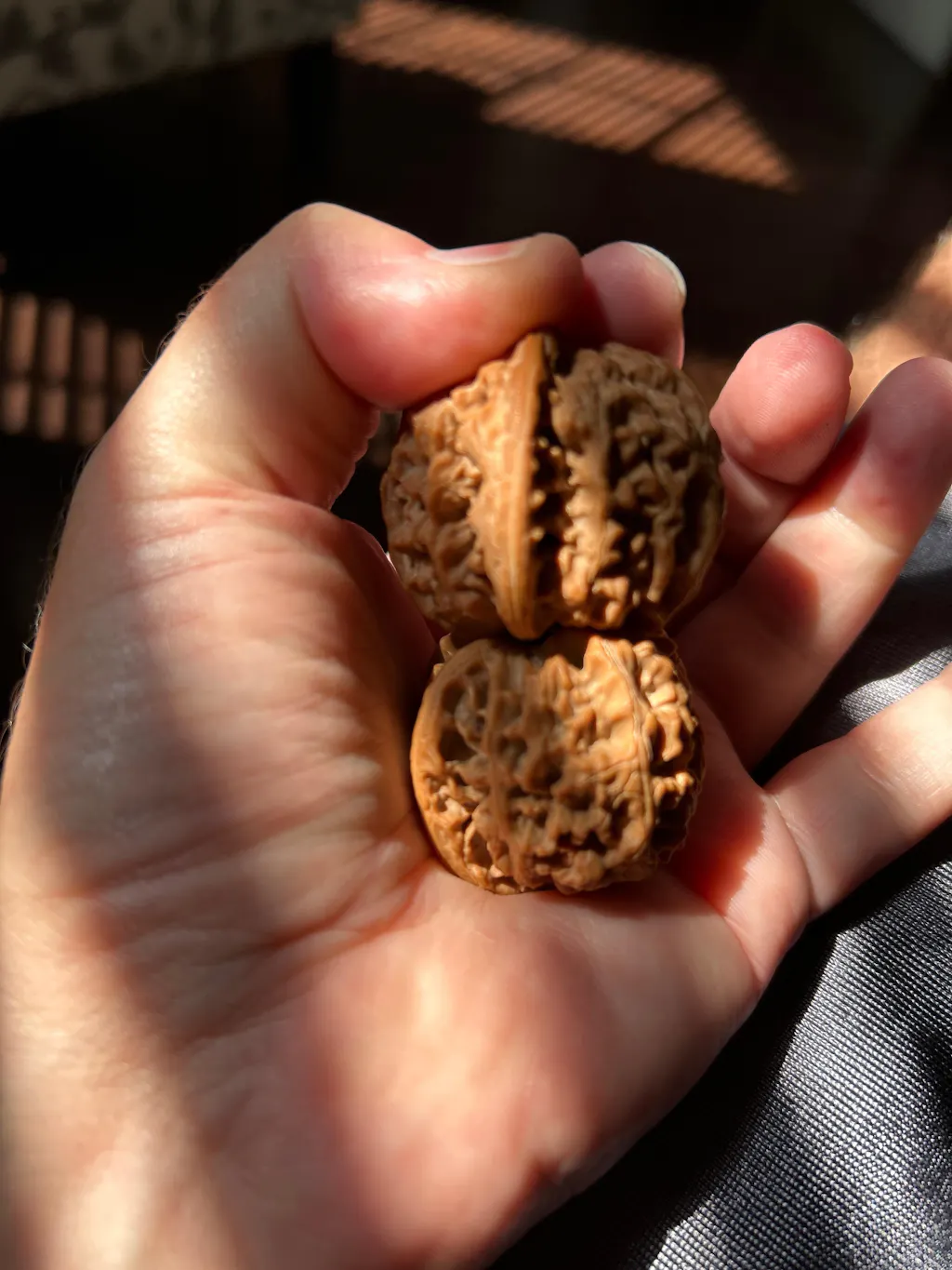 After a long period of care and conditioning, the walnuts may reach the most coveted stage: "Yu Hua", or jade-like transformation. At this point, the surface appears glossy, translucent, and smooth to the touch—just like jade. Under the light, they shine with a reddish glow and a refined texture. This is considered the ultimate achievement by Wenwan masters.