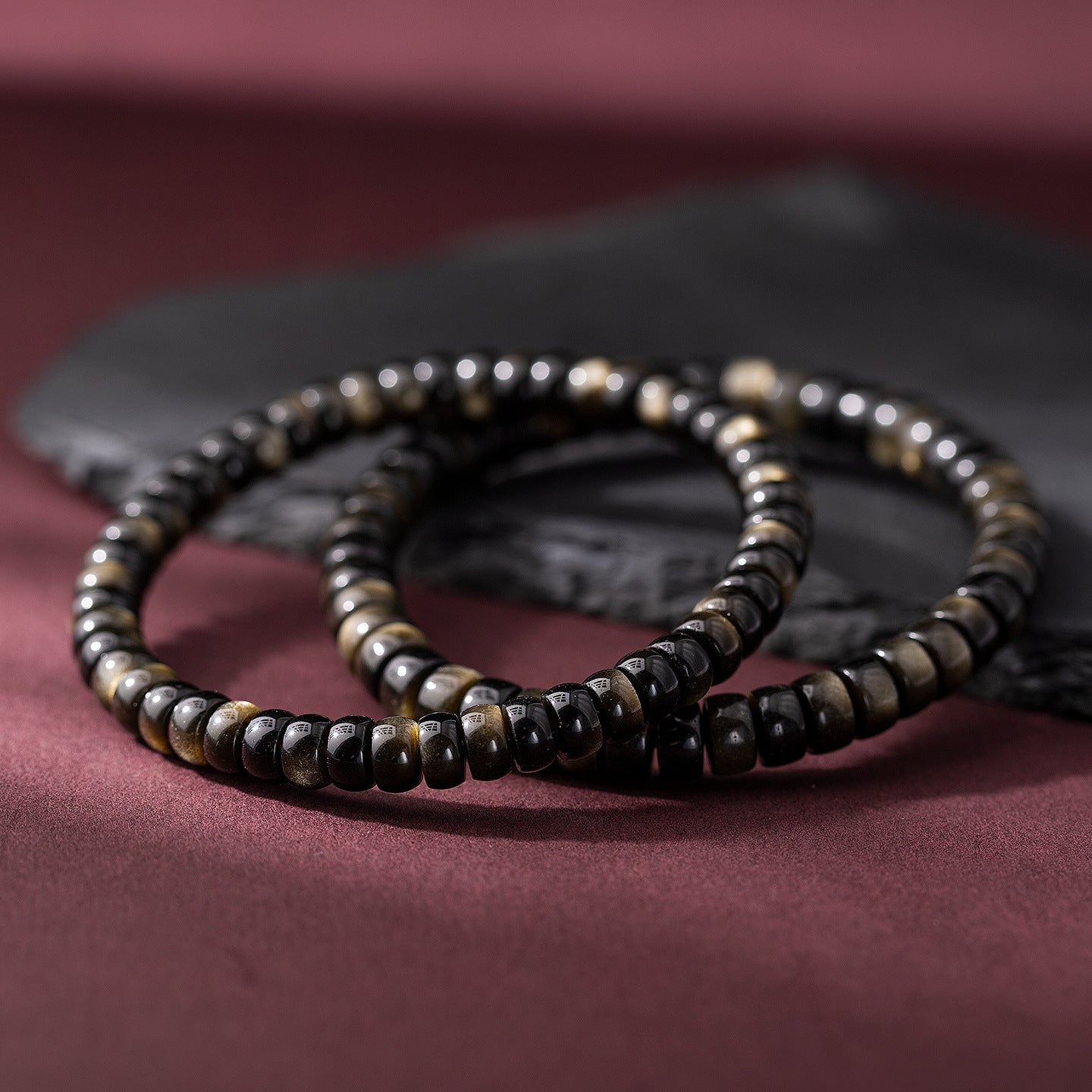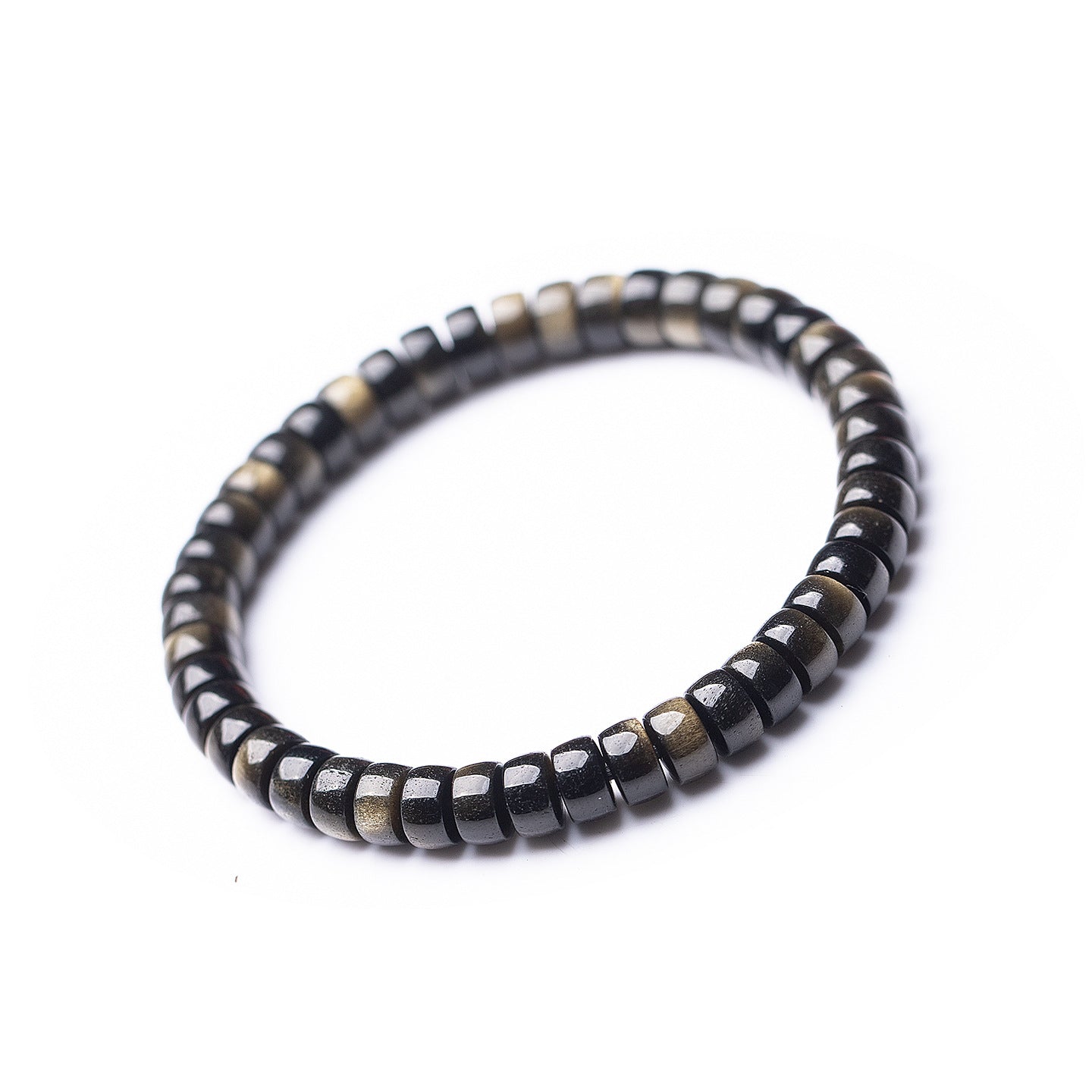 Our Natural Gold Obsidian Bracelet features meticulously straight-cut thin slice beads, each polished to reveal the shimmering golden sheen unique to this stone. The subtle sparkle and sleek texture give the bracelet a refined, versatile look suitable for both men and women, making it a perfect accessory for any style.