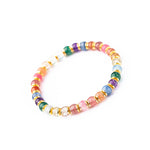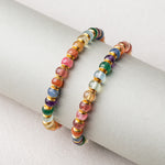 Our Natural Rainbow Multi-Gemstone Bracelet features straight-cut beads with a smooth polished finish, showcasing the vibrant colors of natural gemstones in a harmonious blend. The rainbow-like tones bring a cheerful and elegant touch to your style. This delicate women's bracelet is perfect for those who appreciate the beauty of natural stones and timeless elegance.