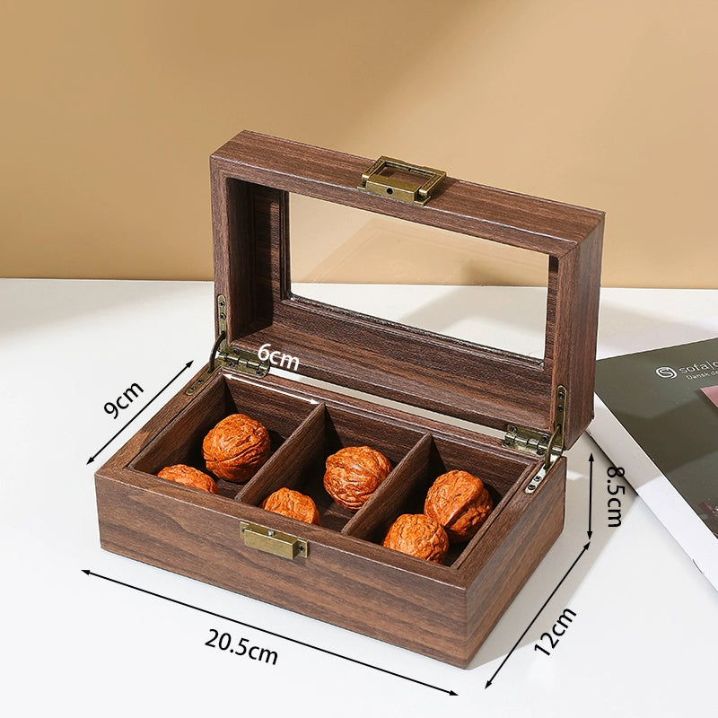 Classic brass hardware ensures the box stays tightly closed, protecting your walnuts from dust and damage.