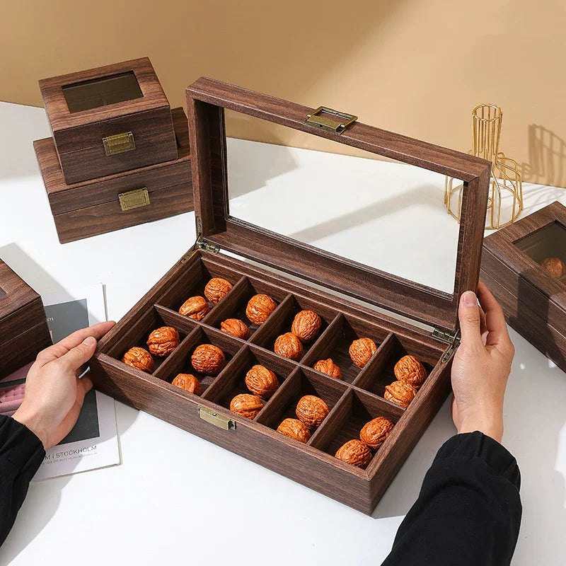Keep your treasured Wenwan walnuts perfectly organized and protected with this premium solid wood storage box. Designed with a natural aesthetic and durable structure, it showcases your collection with elegance and clarity.