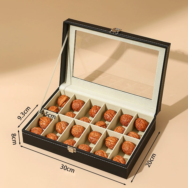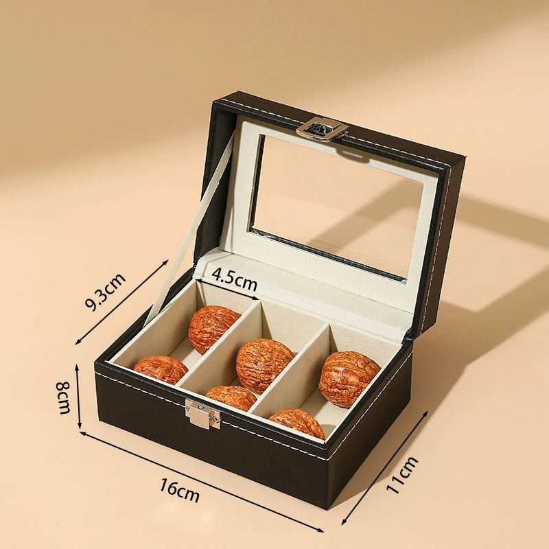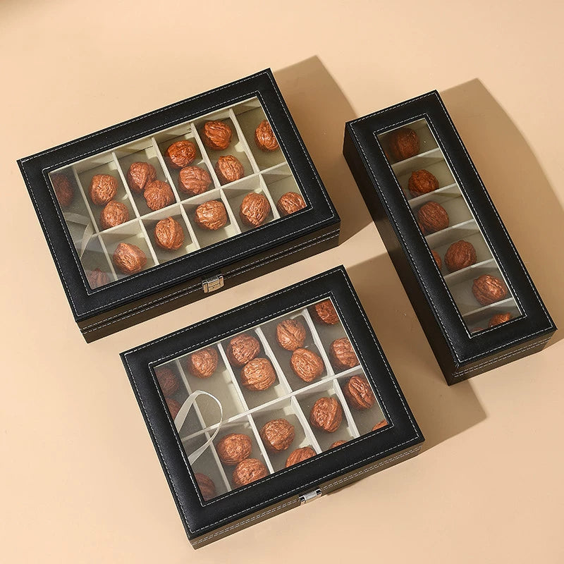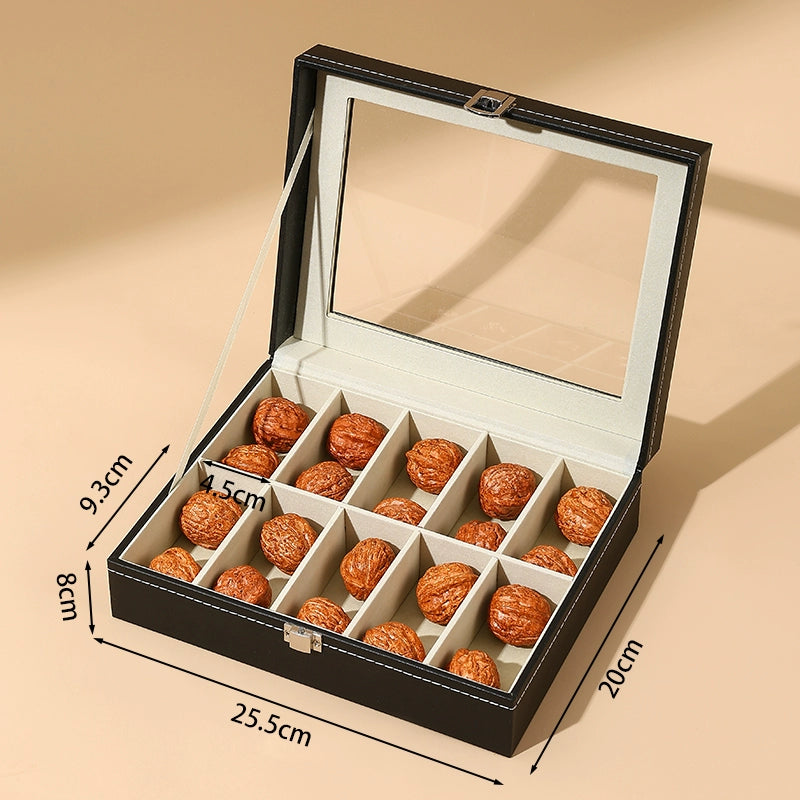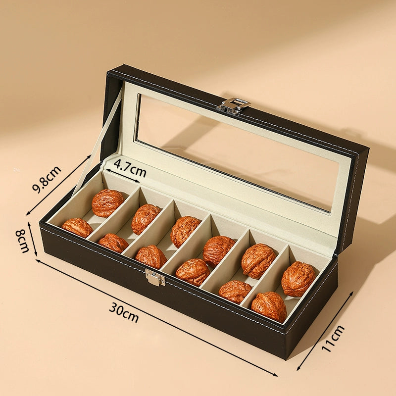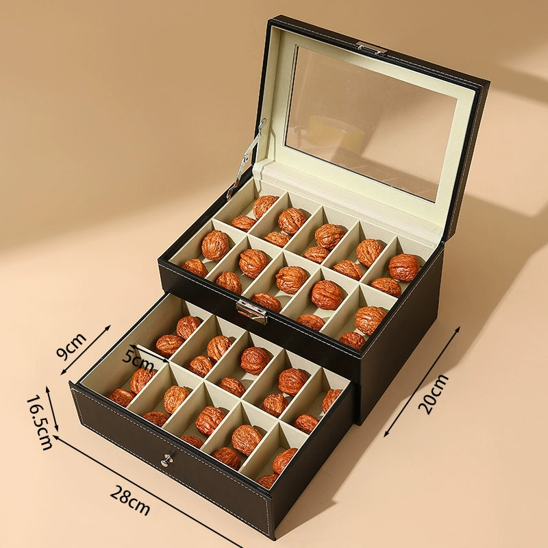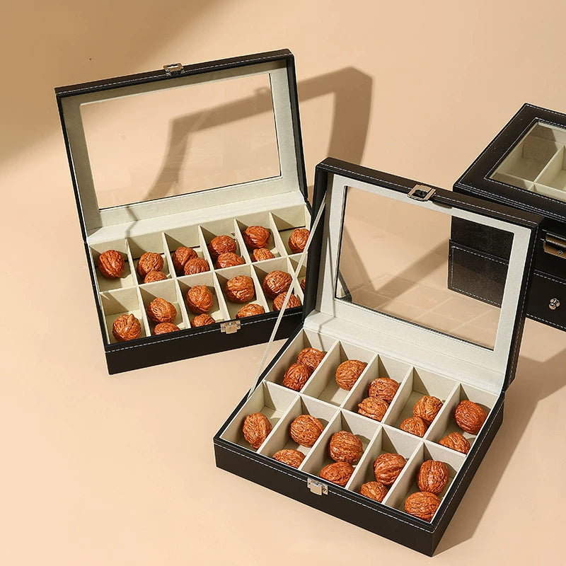 Keep your treasured Wenwan walnuts and collectibles neatly organized in this premium leather storage box. With a transparent display window, you can proudly showcase your collection while keeping it dust-free and secure. The elegant design combines high-quality leather craftsmanship with practical divided compartments for effortless organization.